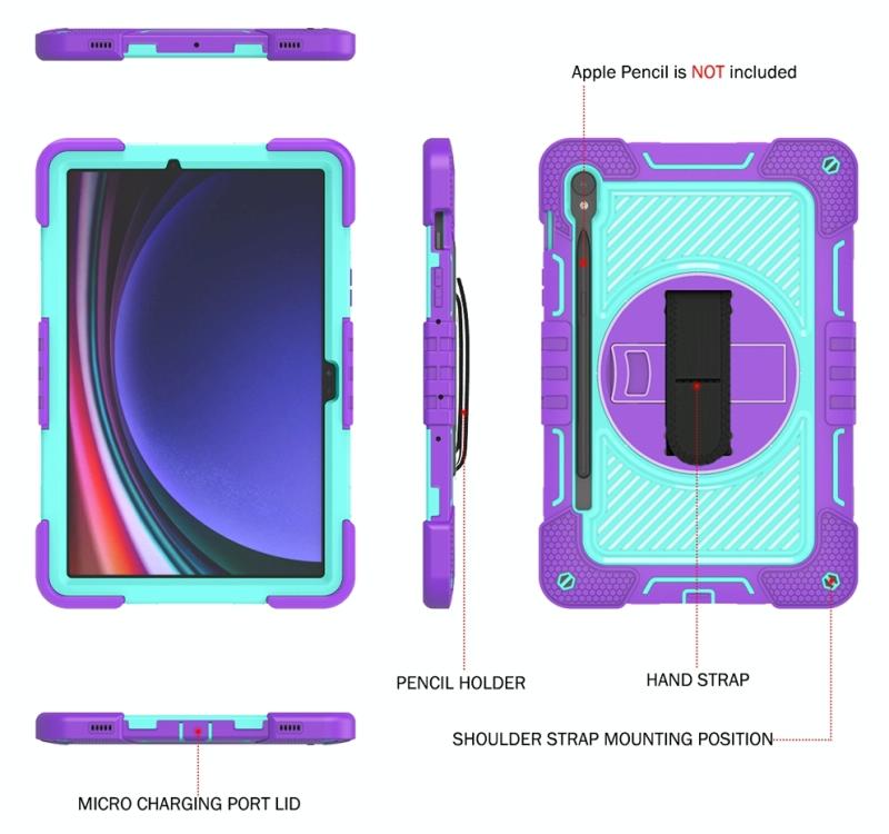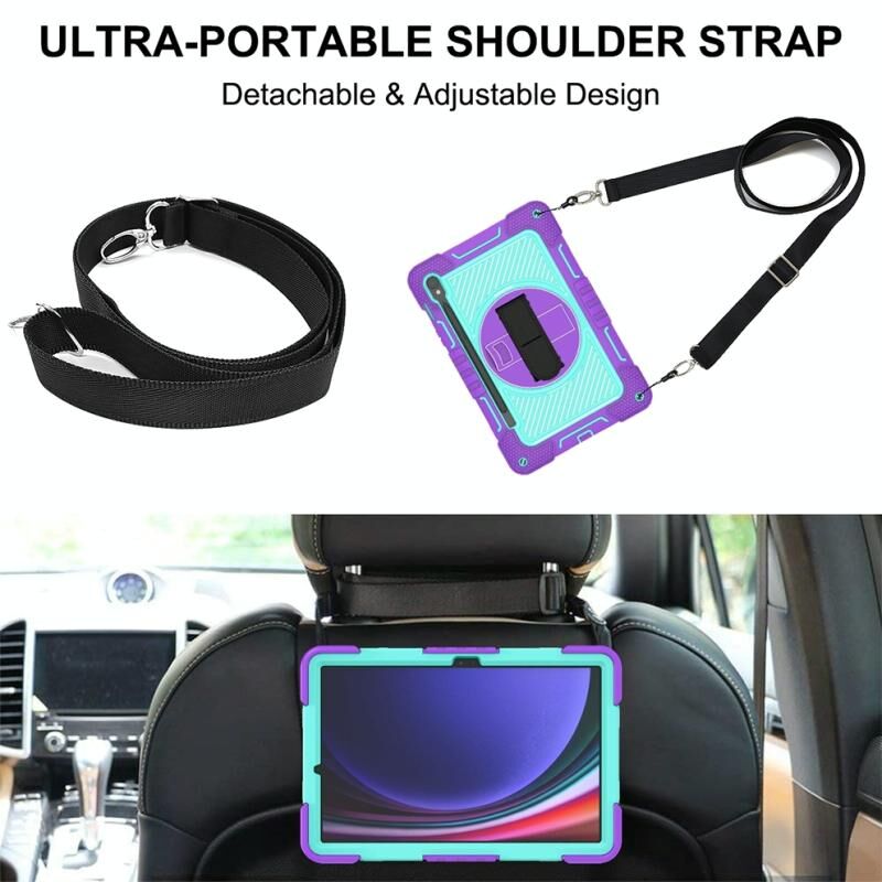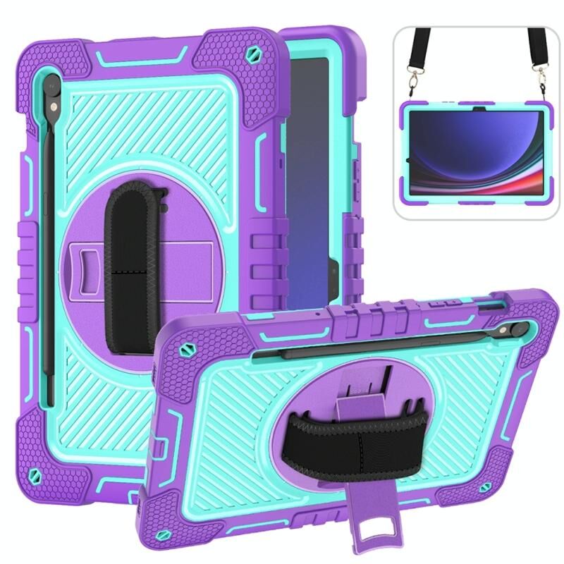 For Samsung Galaxy Tab S9 360 Degree Rotation PC Contrast Silicone Tablet Case(Purple + Mint Green)