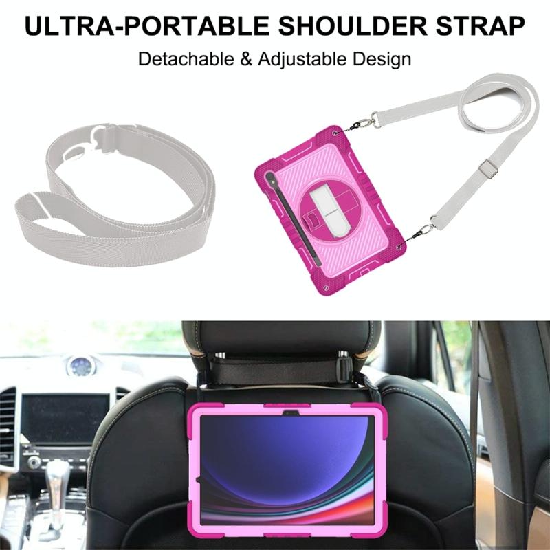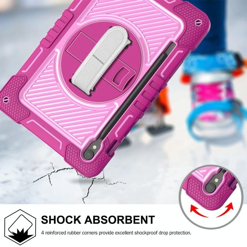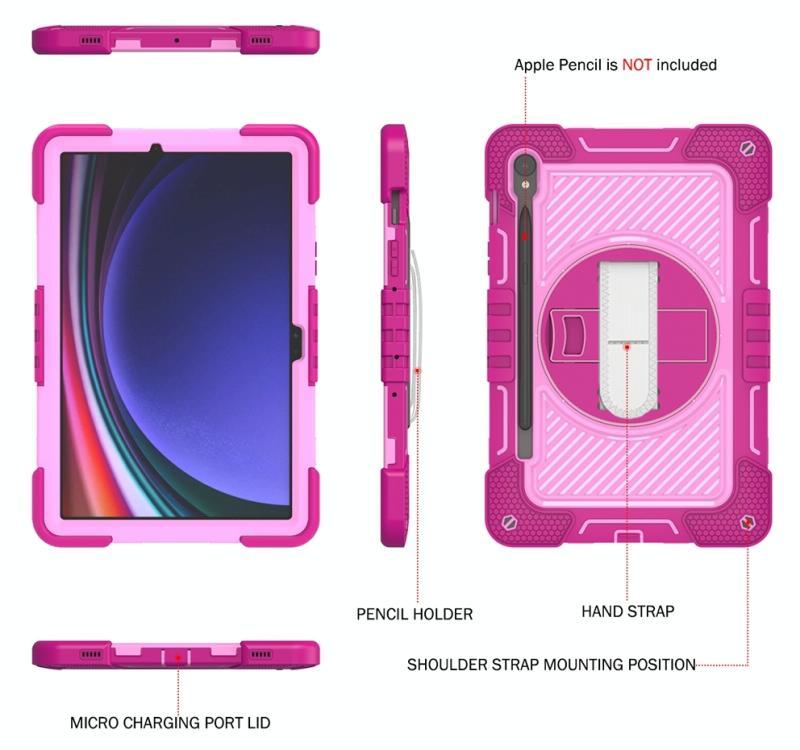 For Samsung Galaxy Tab S9 360 Degree Rotation PC Contrast Silicone Tablet Case(Rose Red + Pink)