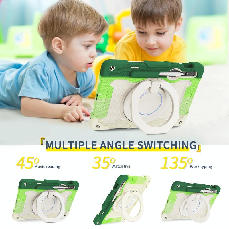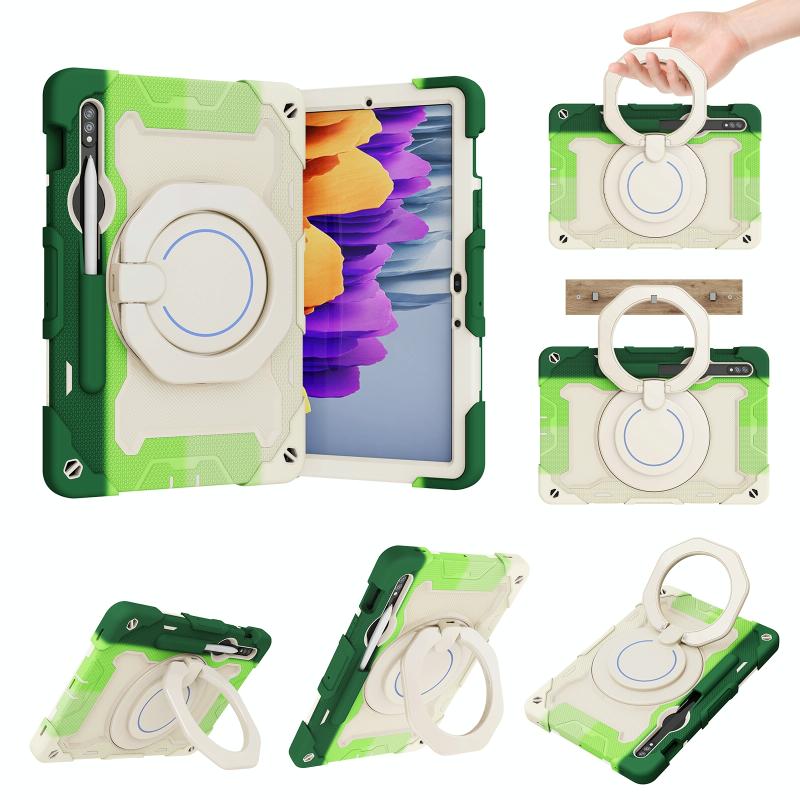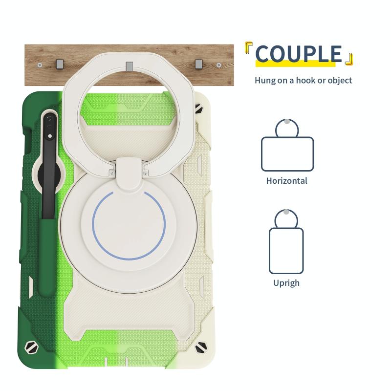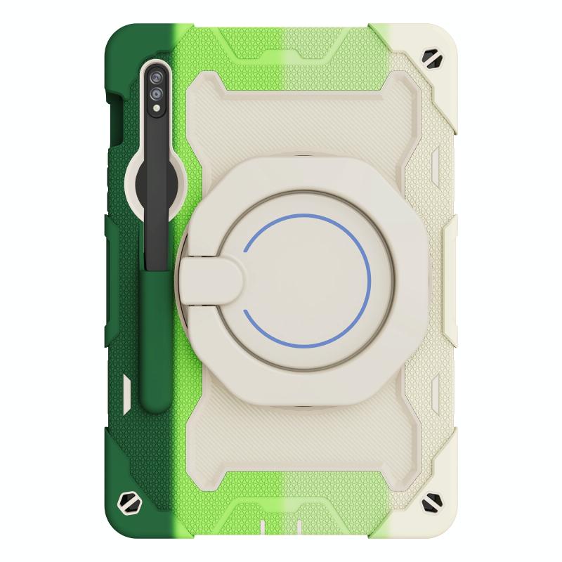 For Samsung Galaxy Tab S9 Armor Portable Rotating Ring Holder Silicone Tablet Case(Colorful Green)