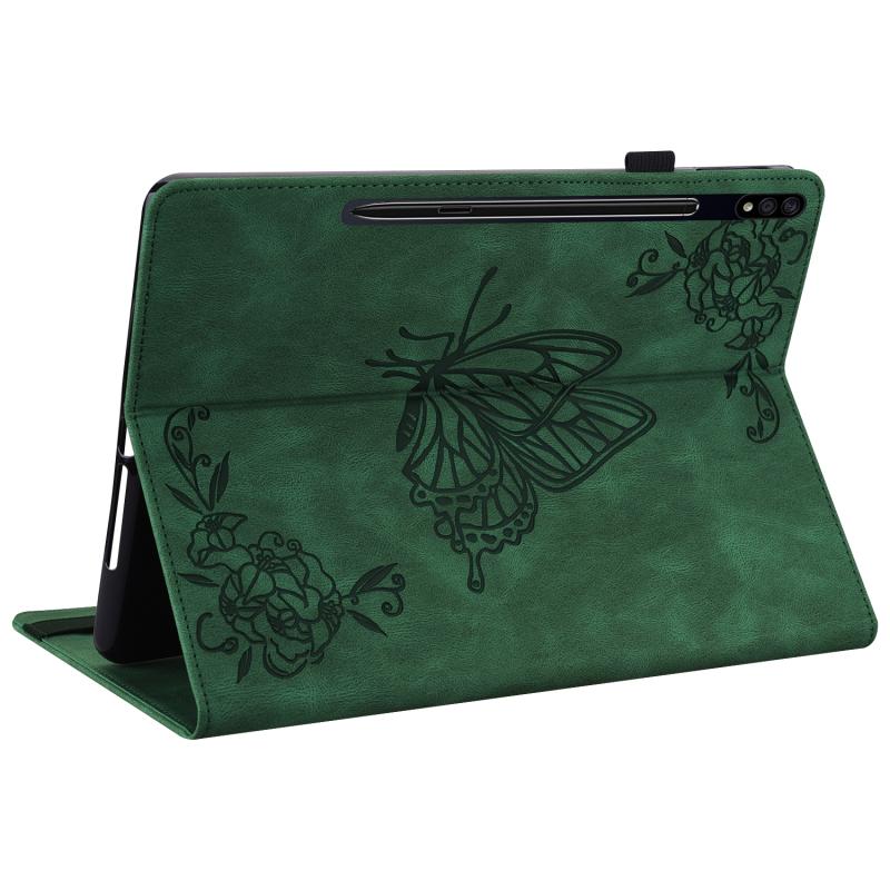 For Samsung Galaxy Tab S9 Butterfly Flower Embossed Leather Tablet Case(Green)