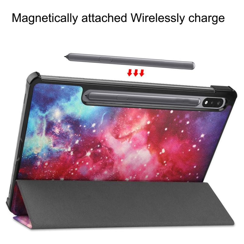 For Samsung Galaxy Tab S9 Custer Painted 3-Fold Holder Smart Leather Tablet Case(Milky Way Nebula)