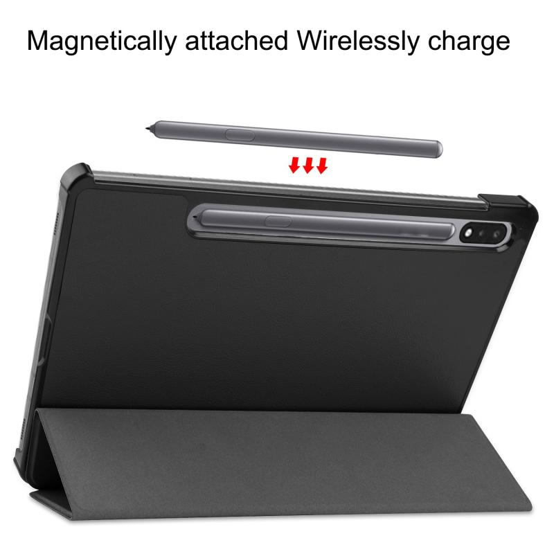 For Samsung Galaxy Tab S9 Custer Pure Color 3-Fold Holder Smart Leather Tablet Case(Black)