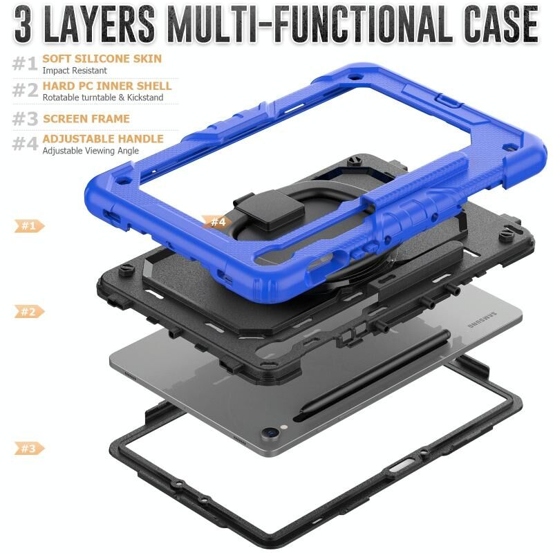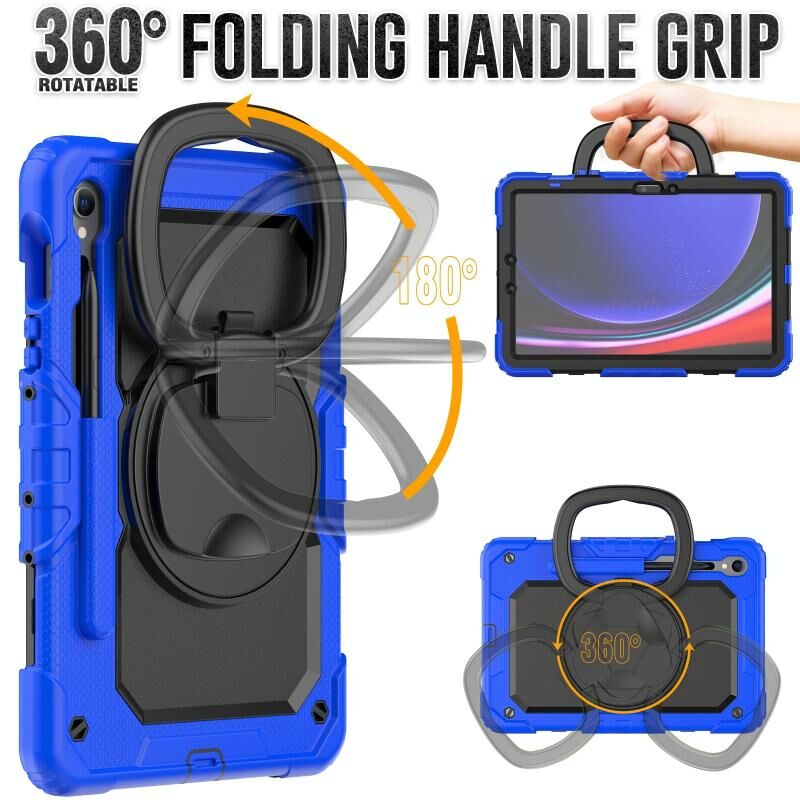 For Samsung Galaxy Tab S9 D Type Silicone Hybrid PC Tablet Case with Handle Holder(Blue)