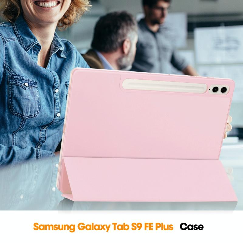 For Samsung Galaxy Tab S9 FE+ / S10+ 3-Fold Pure Color TPU Smart Leather Tablet Case with Pen Slot(Pink)