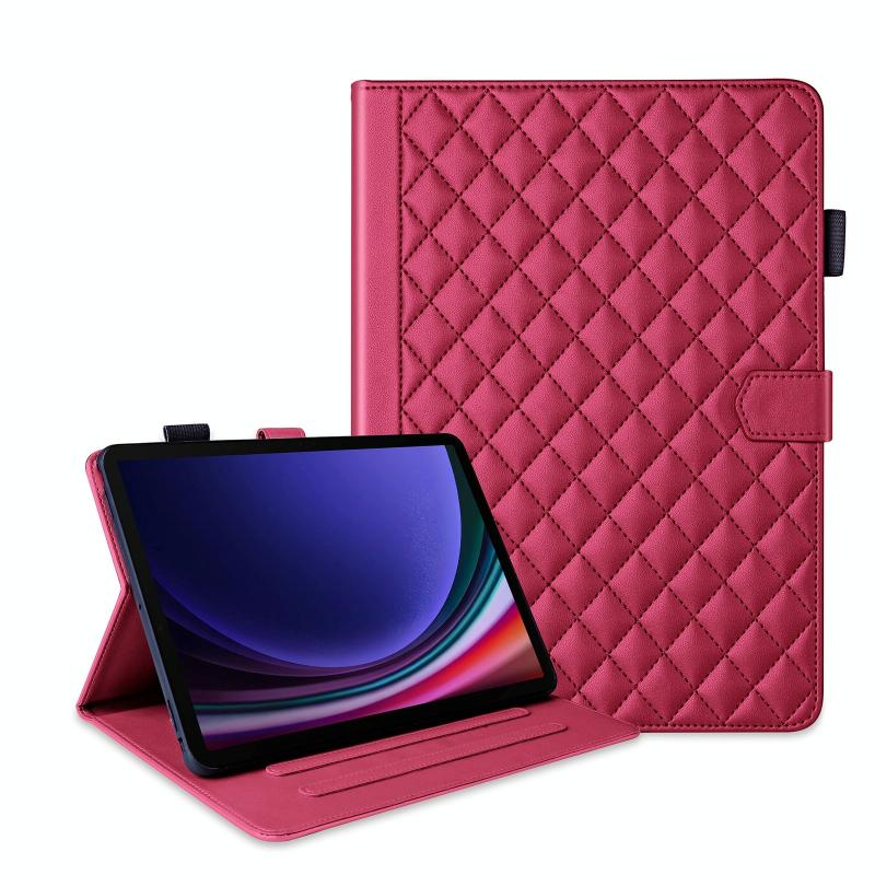 For Samsung Galaxy Tab S9 FE / S9 Rhombus Lattice Leather Tablet Case(Red)