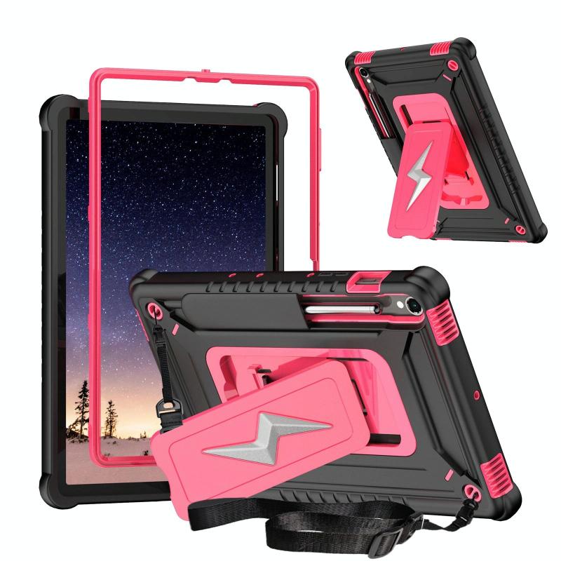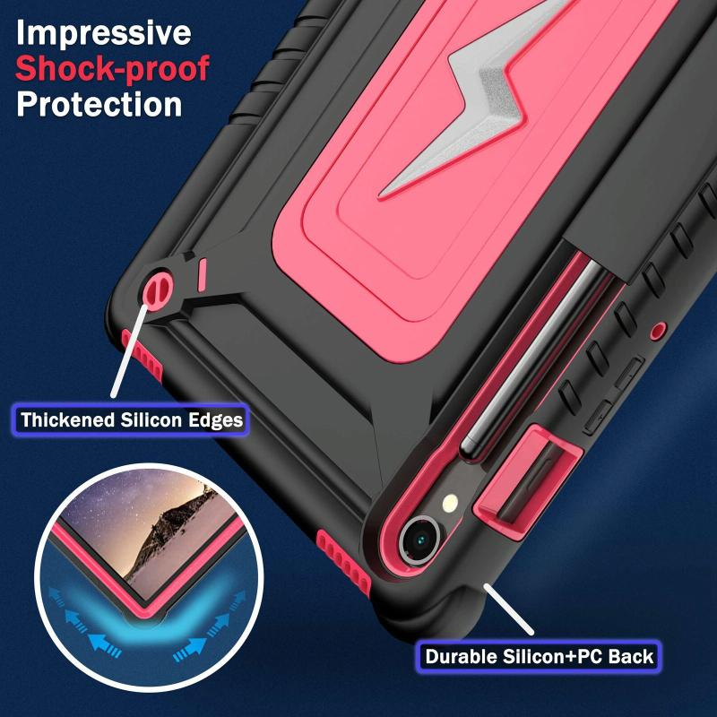 For Samsung Galaxy Tab S9 FE / S9 / S8 Armor Bolt Shape Holder Silicone Hybrid PC Tablet Case(Black Rose Red)