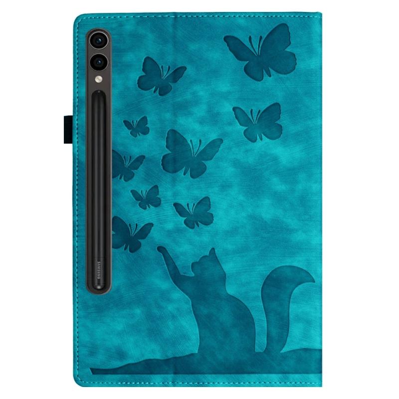 For Samsung Galaxy Tab S9 FE+ / S9+ / S8+ Butterfly Cat Embossing Leather Tablet Case(Sky Blue)