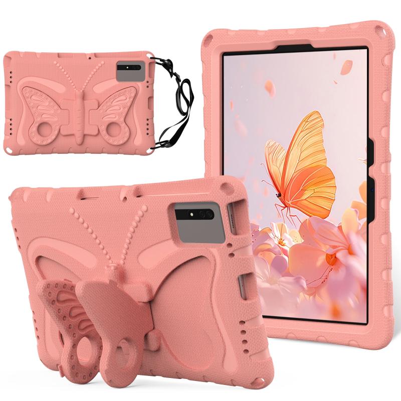 For Samsung Galaxy Tab S9 FE X510 Butterfly Bracket EVA Shockproof Tablet Case(Pink Orange)