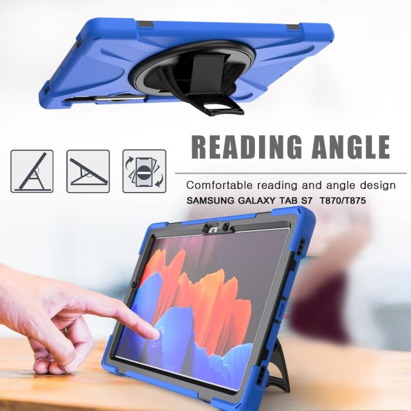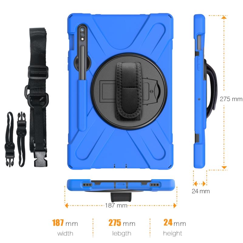 For Samsung Galaxy Tab S9 / Galaxy Tab S8 / Galaxy Tab S7 (2020) T870 Shockproof Colorful Silicone + PC Protective Case with Holder & Shoulder Strap & Hand Strap & Pen Slot(Blue)