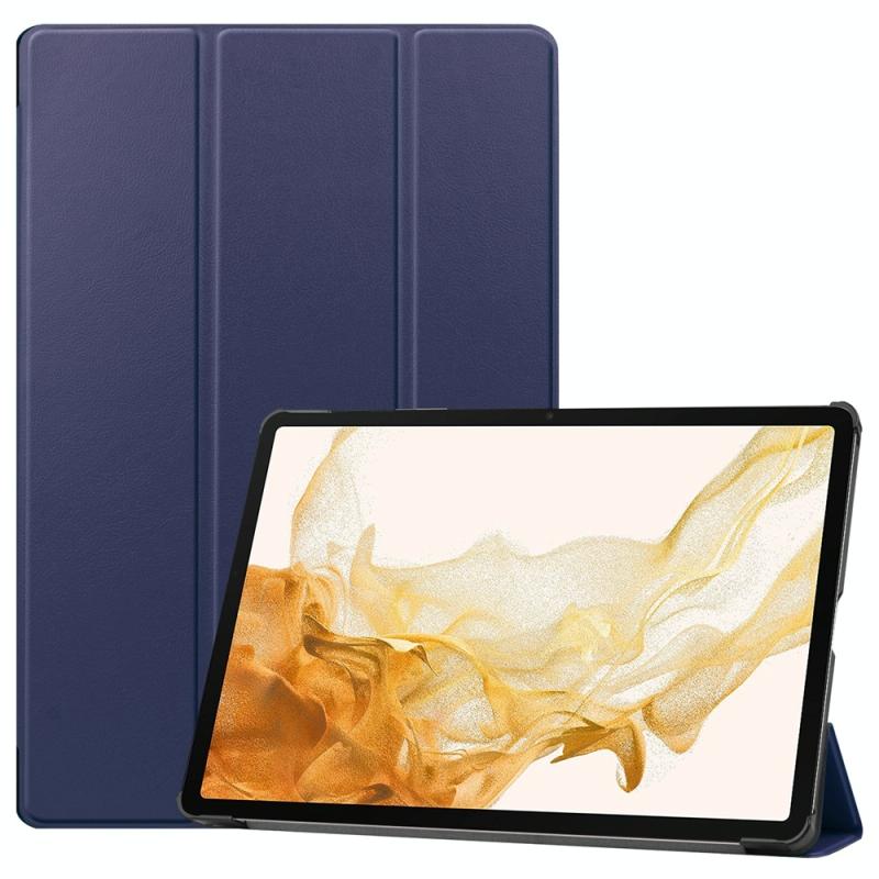 For Samsung Galaxy Tab S9+ JUNSUNMAY Custer Solid Color 3-Fold Stand Leather Smart Tablet Case(Dark Blue) (JUNSUNMAY)