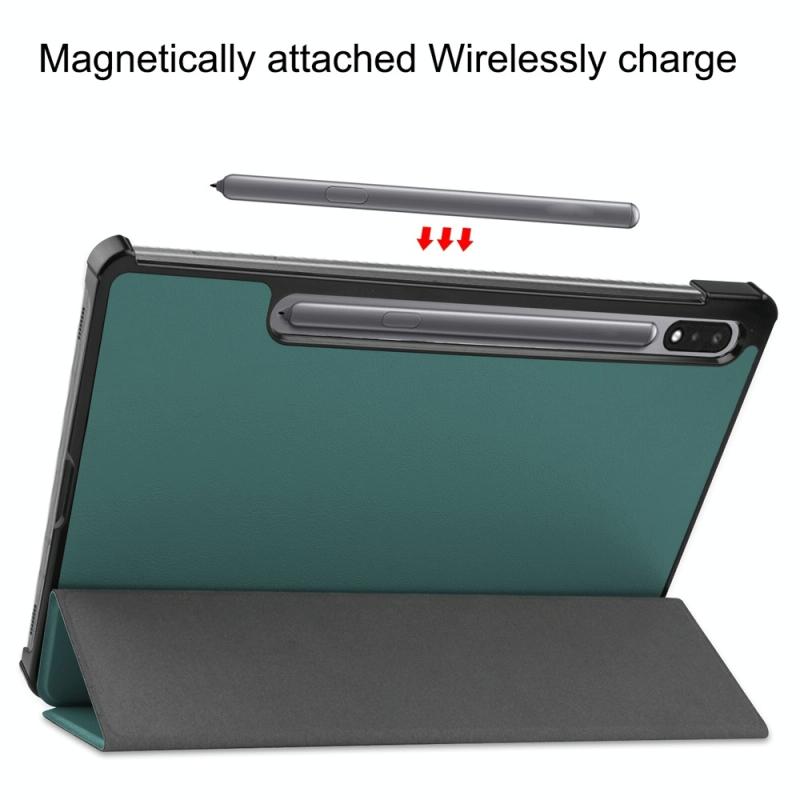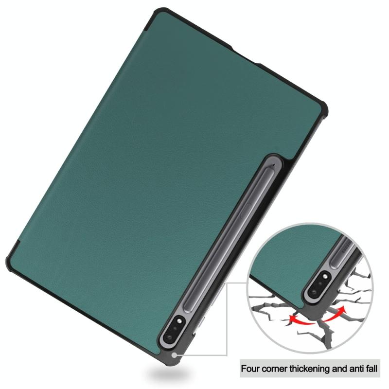 For Samsung Galaxy Tab S9+ JUNSUNMAY Custer Solid Color 3-Fold Stand Leather Smart Tablet Case(Dark Green) (JUNSUNMAY)