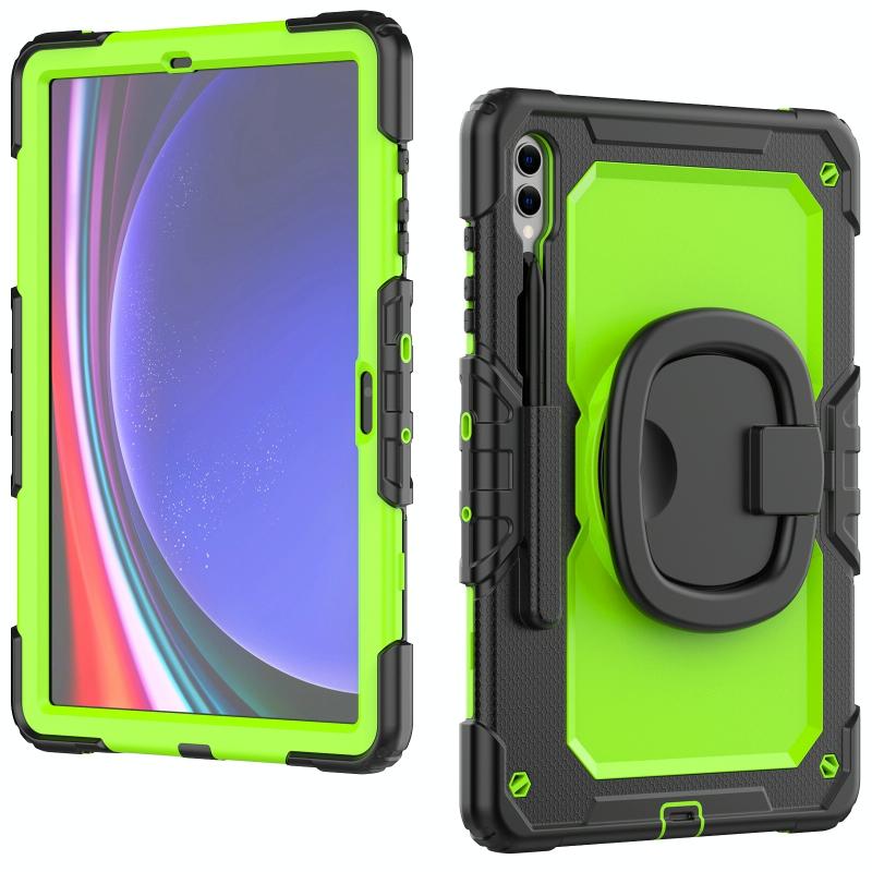 For Samsung Galaxy Tab S9+ / S10+ D Type Silicone Hybrid PC Tablet Case with Handle Holder(Yellow Green PC)