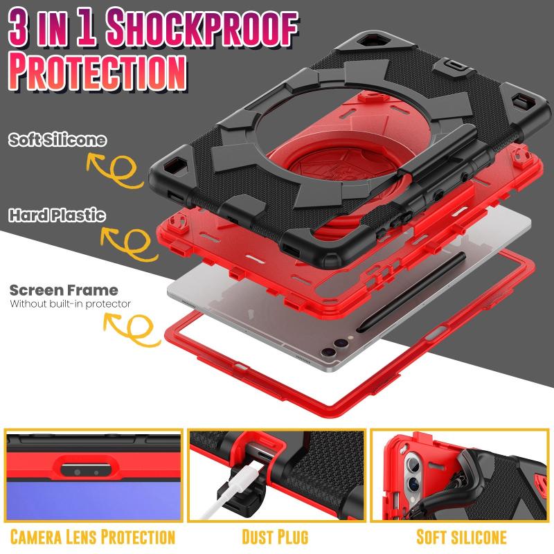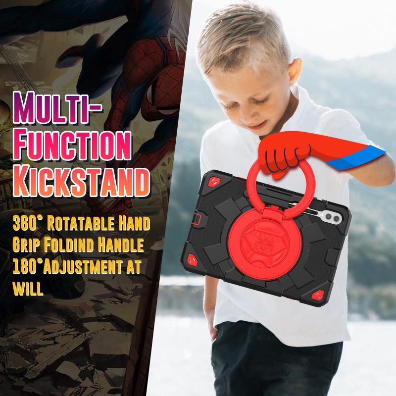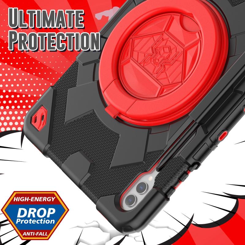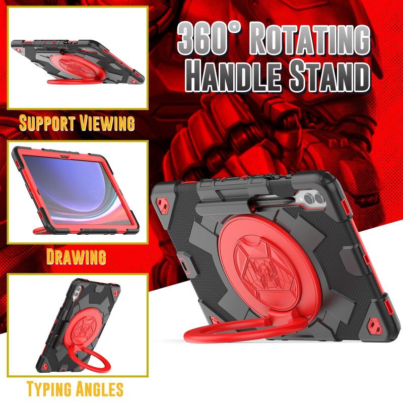 For Samsung Galaxy Tab S9+ / S10+ Spider Rotation Handle Silicone Hybrid PC Tablet Case(Black Red)