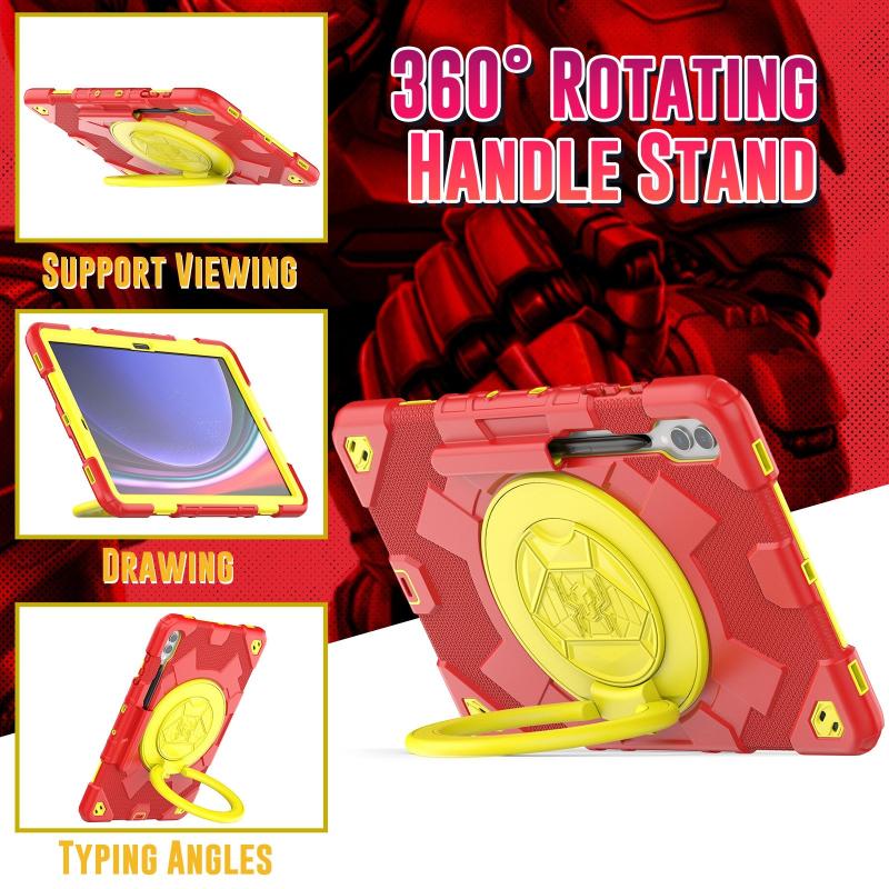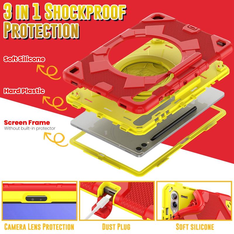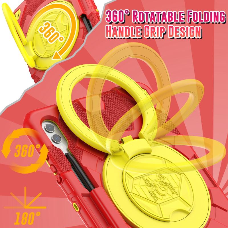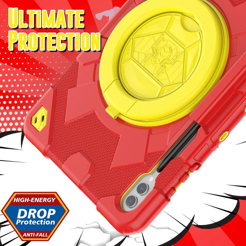 For Samsung Galaxy Tab S9+ / S10+ Spider Rotation Handle Silicone Hybrid PC Tablet Case(Yellow Red)
