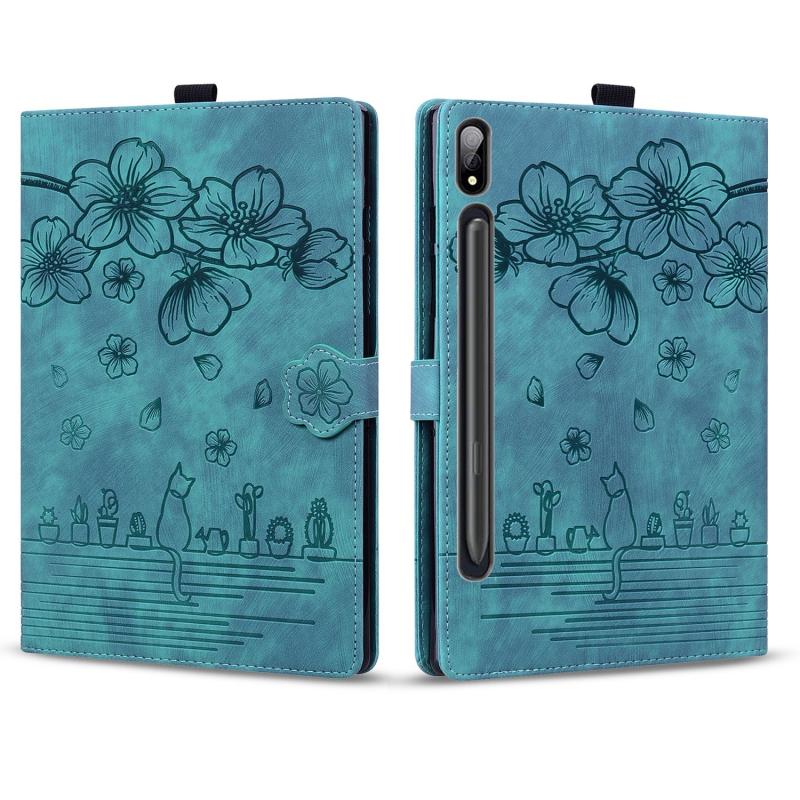 For Samsung Galaxy Tab S9 /S8 /S7 Cartoon Sakura Cat Embossed Smart Leather Tablet Case(Green)