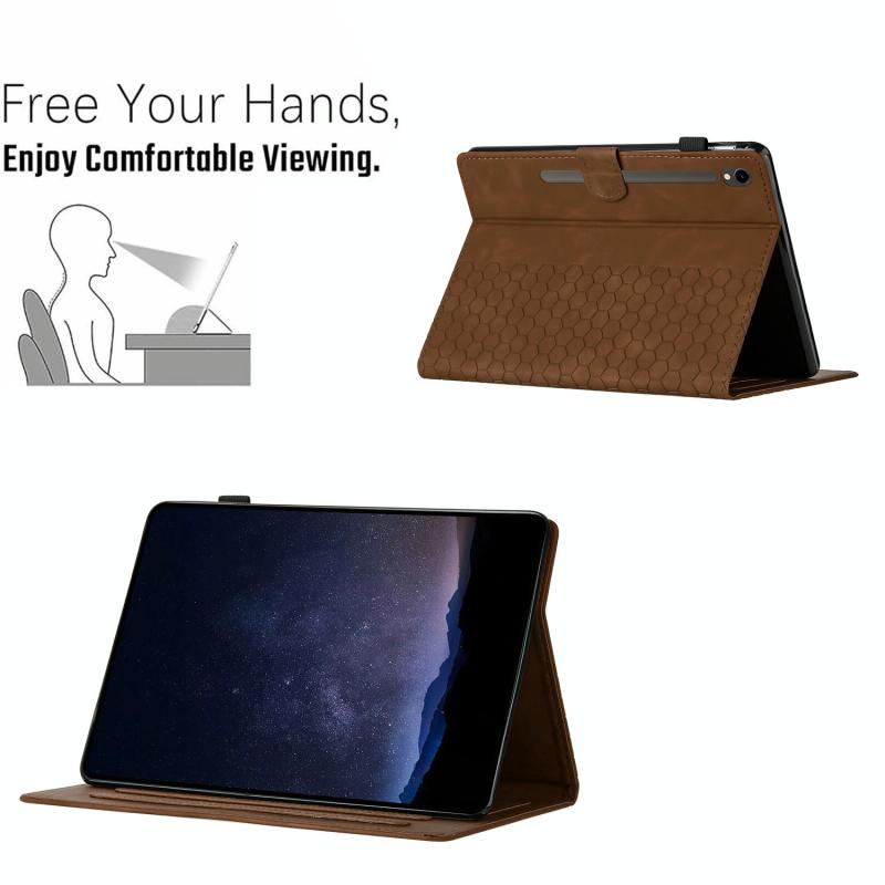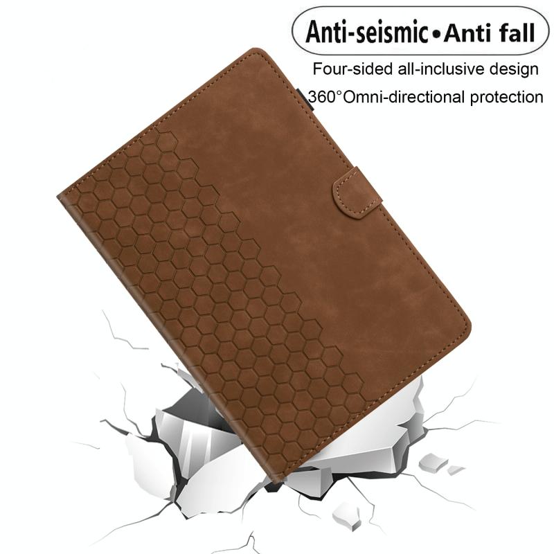 For Samsung Galaxy Tab S9 / S9 FE Honeycomb Embossed Leather Smart Tablet Case(Brown)