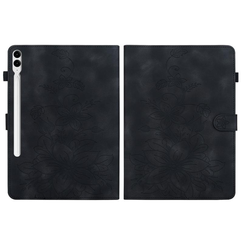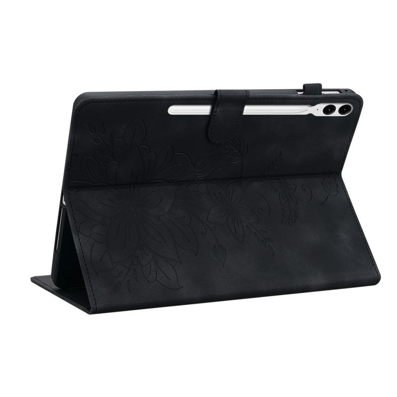 For Samsung Galaxy Tab S9+ / S9 FE+ Lily Embossed Leather Tablet Case(Black)
