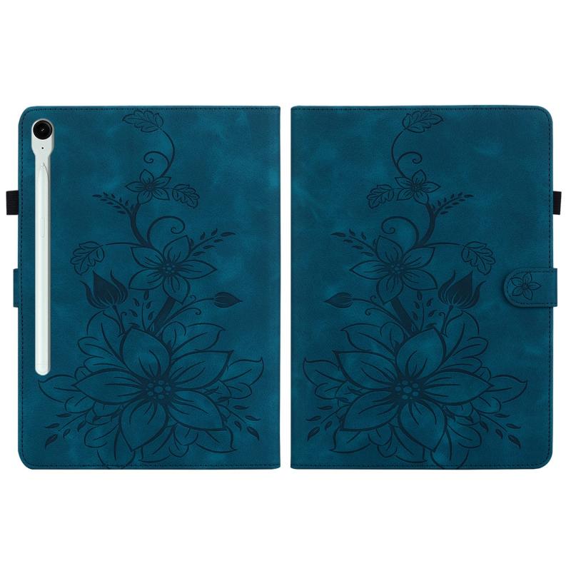 For Samsung Galaxy Tab S9 / S9 FE Lily Embossed Leather Tablet Case(Dark Blue)