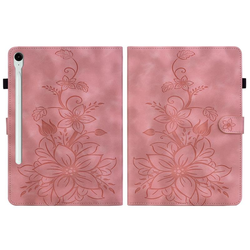 For Samsung Galaxy Tab S9 / S9 FE Lily Embossed Leather Tablet Case(Pink)