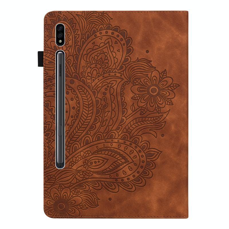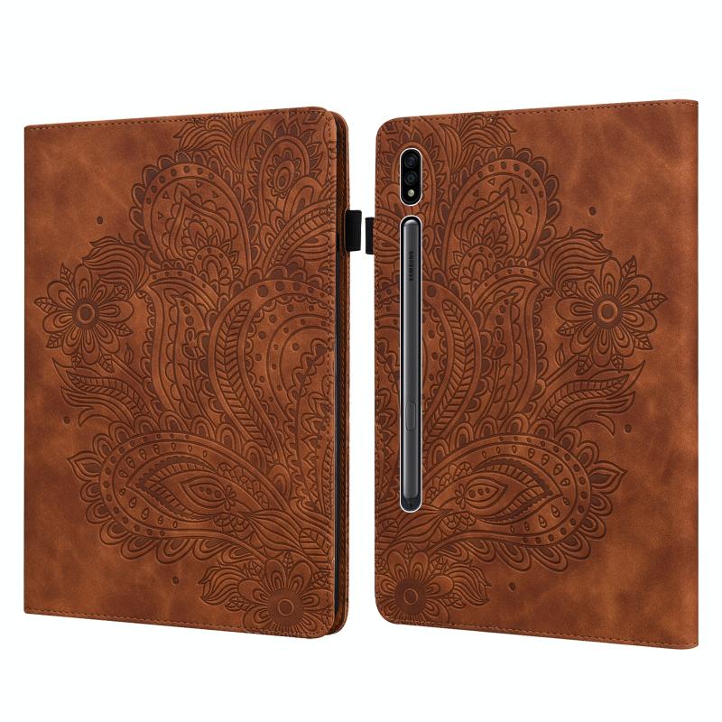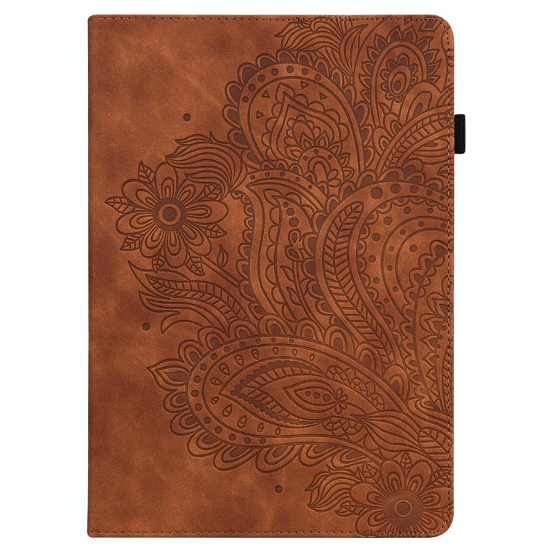 For Samsung Galaxy Tab S9 / S9 FE Peacock Embossed Pattern Leather Tablet Case(Brown)