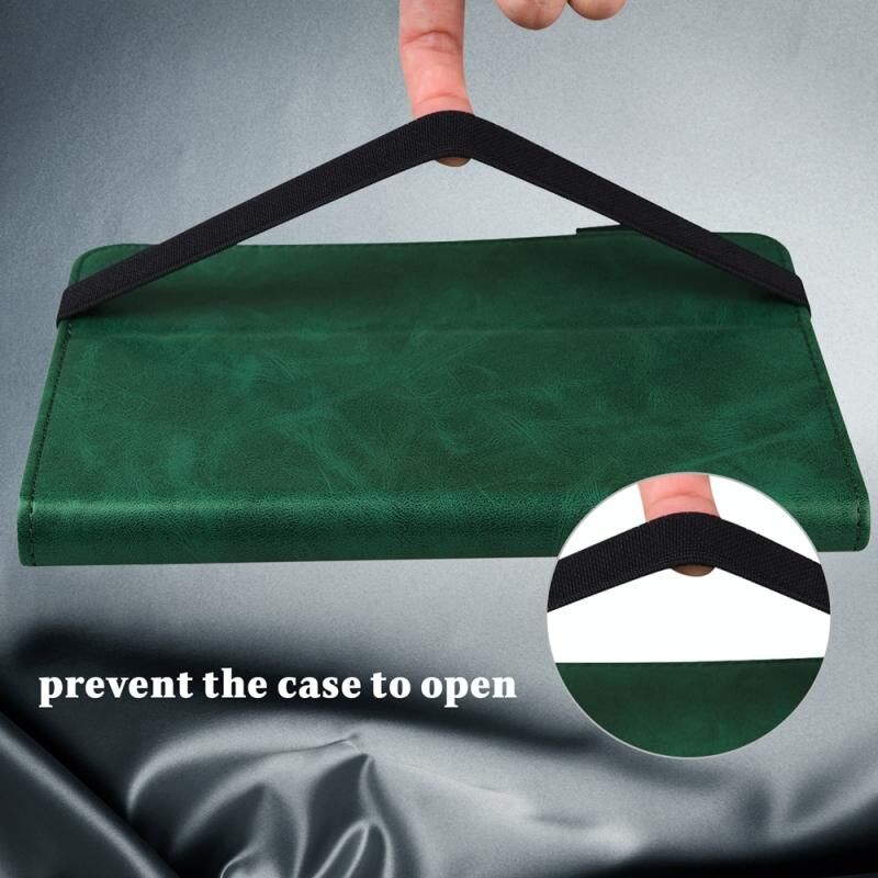 For Samsung Galaxy Tab S9+ / S9 FE+ Solid Color Stripe Embossed Leather Tablet Case(Green)