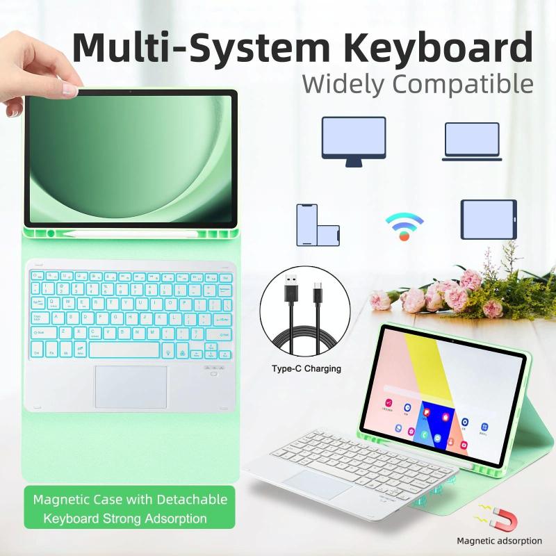 For Samsung Galaxy Tab S9 / S9 FE Touch Bluetooth Colorful Backlit Keyboard Case(Black)