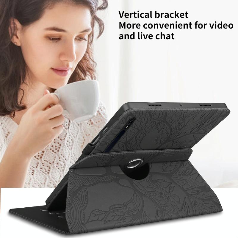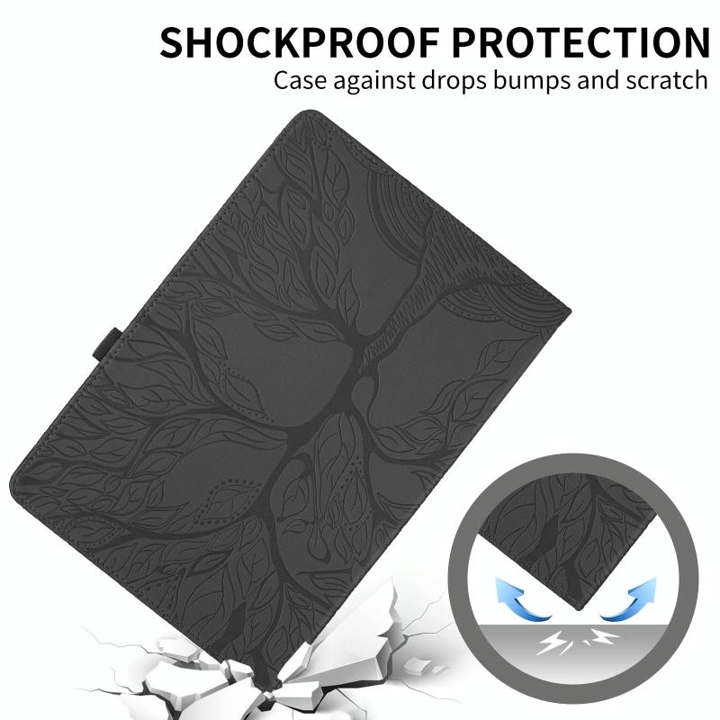 For Samsung Galaxy Tab S9 / S9 FE Tree Life Embossed Rotation Leather Tablet Case(Black)