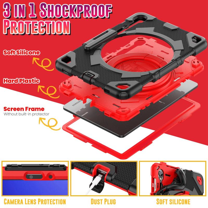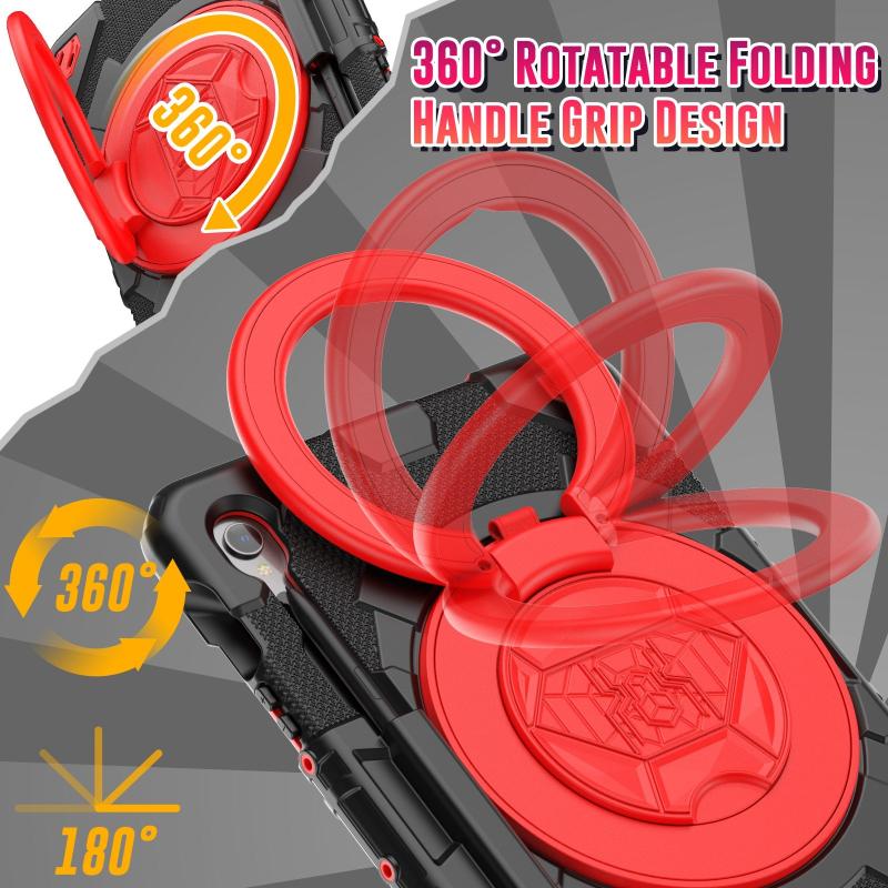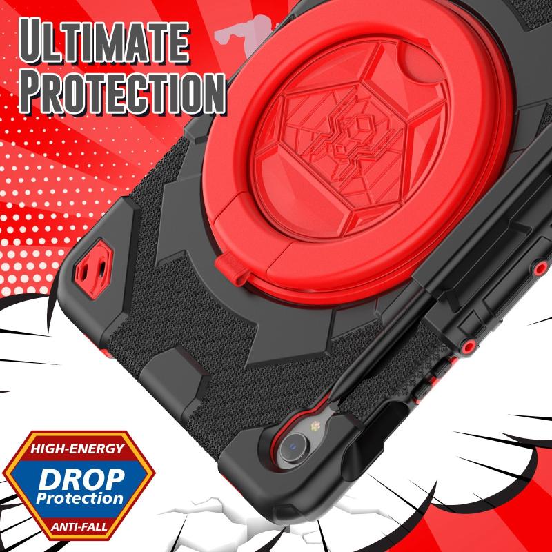 For Samsung Galaxy Tab S9 Spider Rotation Handle Silicone Hybrid PC Tablet Case(Black Red)