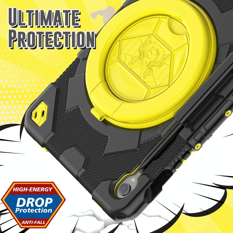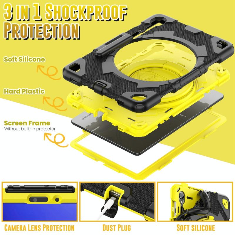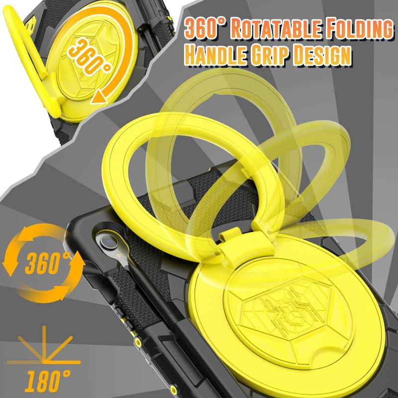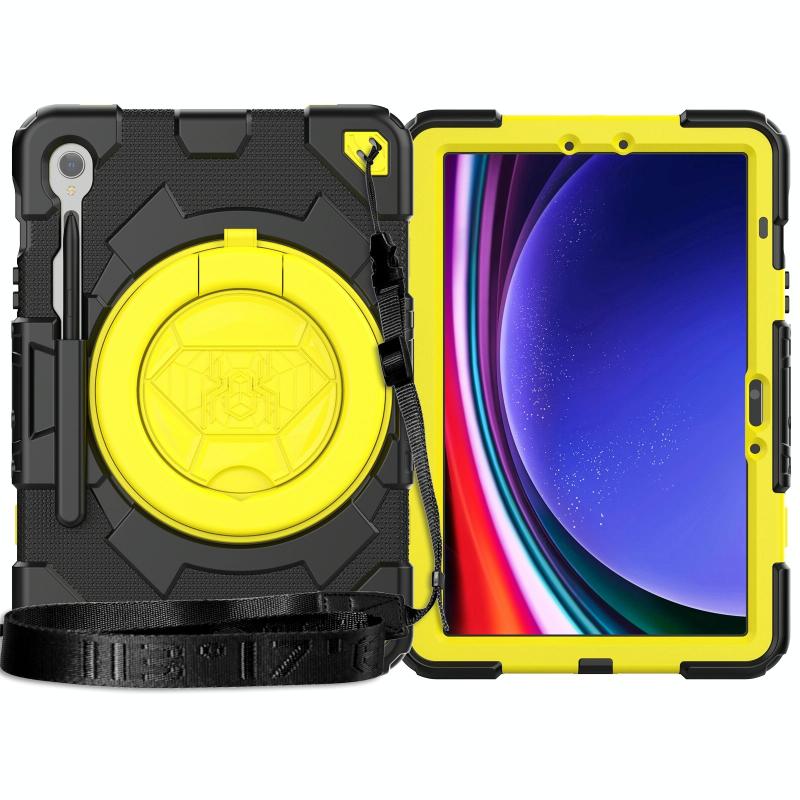 For Samsung Galaxy Tab S9 Spider Rotation Handle Silicone Hybrid PC Tablet Case(Black Yellow)