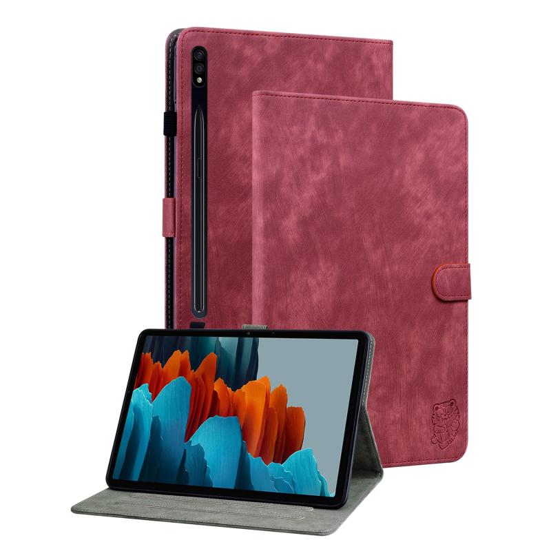 For Samsung Galaxy Tab S9 Tiger Pattern Flip Leather Tablet Case(Red)