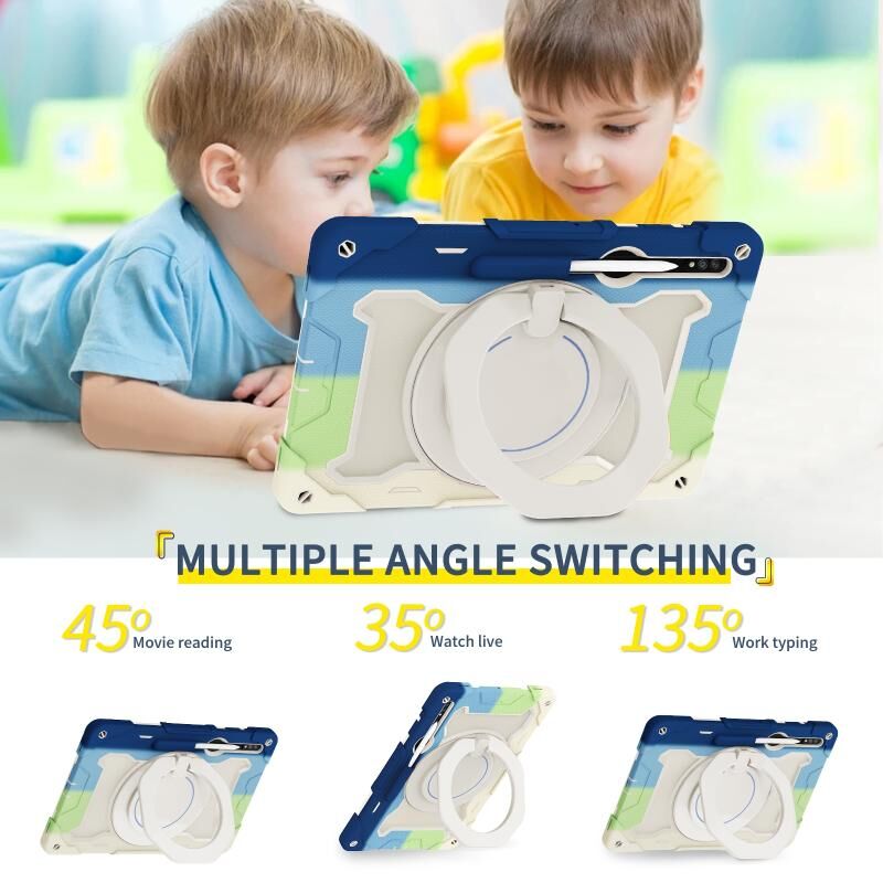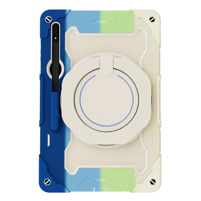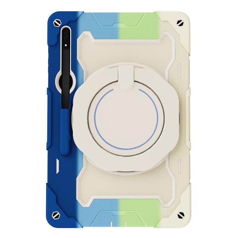 For Samsung Galaxy Tab S9 Ultra Armor Portable Rotating Ring Holder Silicone Tablet Case(Colorful Blue)