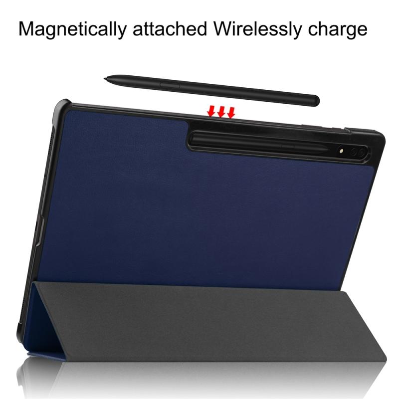 For Samsung Galaxy Tab S9 Ultra JUNSUNMAY Custer Solid Color 3-Fold Stand Leather Smart Tablet Case(Dark Blue) (JUNSUNMAY)
