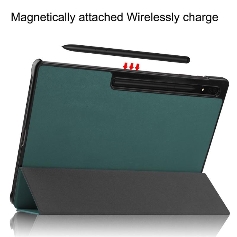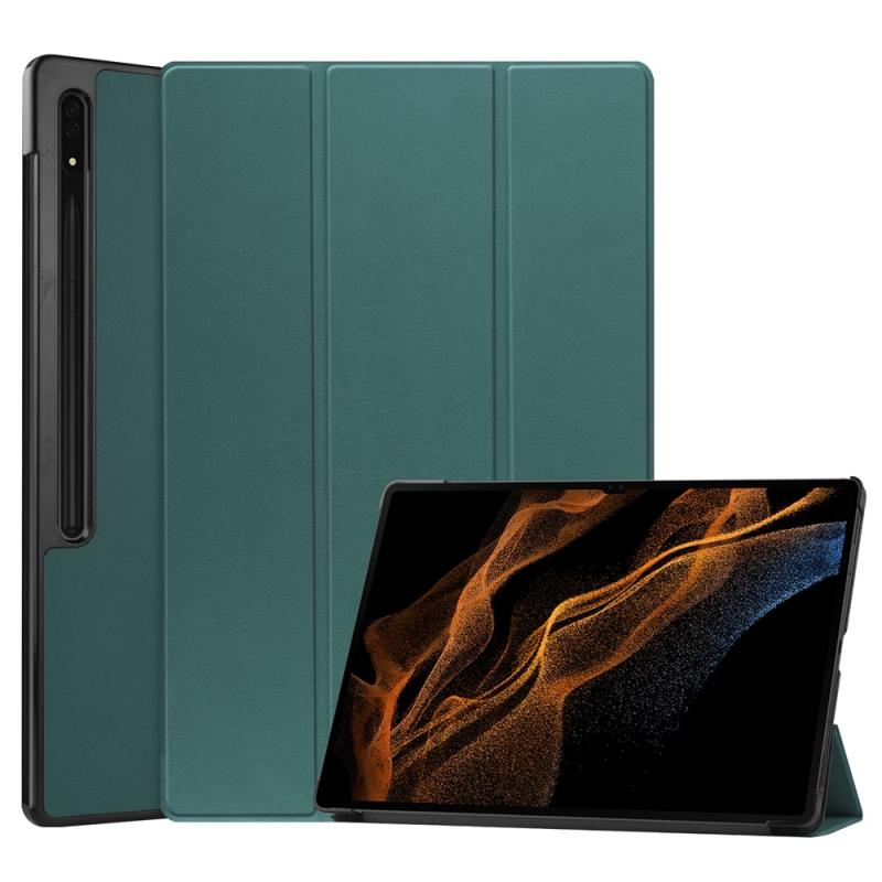For Samsung Galaxy Tab S9 Ultra JUNSUNMAY Custer Solid Color 3-Fold Stand Leather Smart Tablet Case(Dark Green) (JUNSUNMAY)
