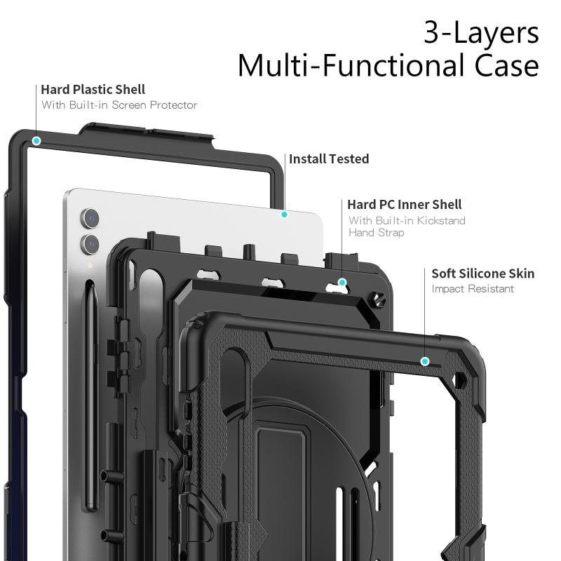 For Samsung Galaxy Tab S9 Ultra / S10 Ultra Silicone Hybrid PC Tablet Protective Case(Black)