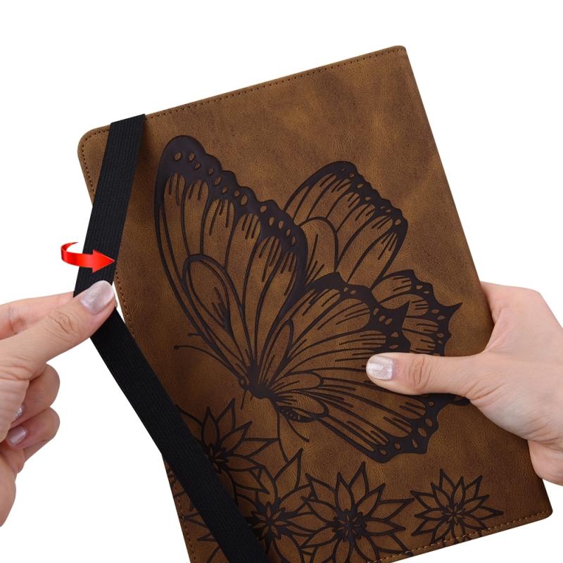For Samsung Galaxy Tab S9 Ultra / S8 Ultra Big Butterfly Embossed Leather Tablet Case(Brown)