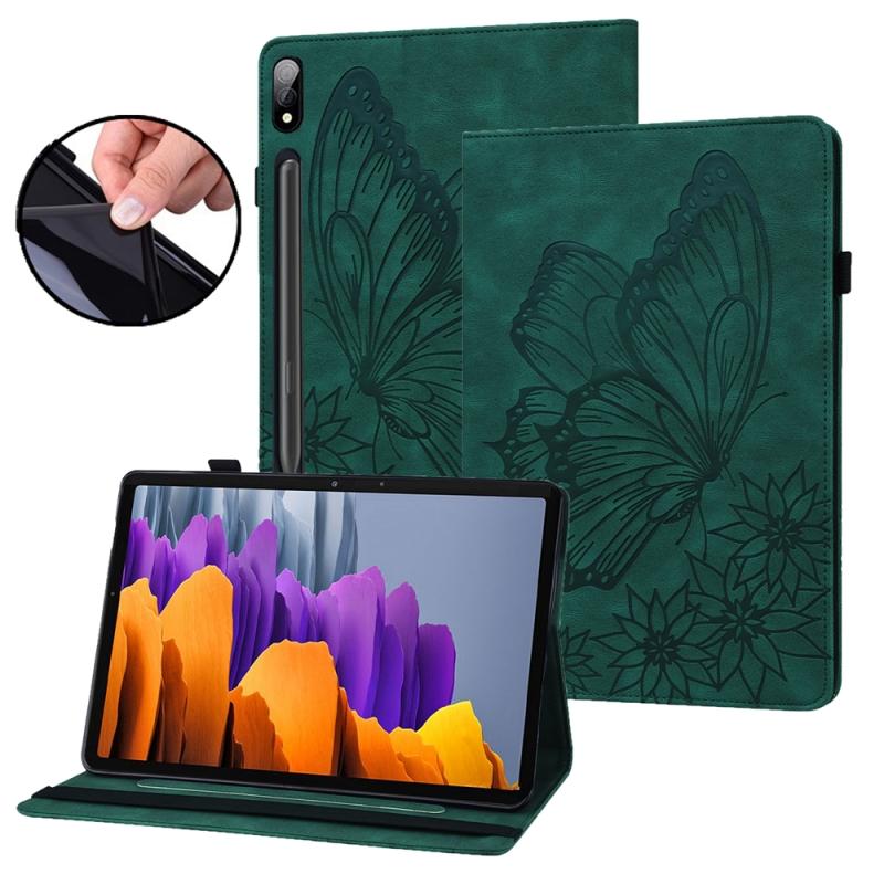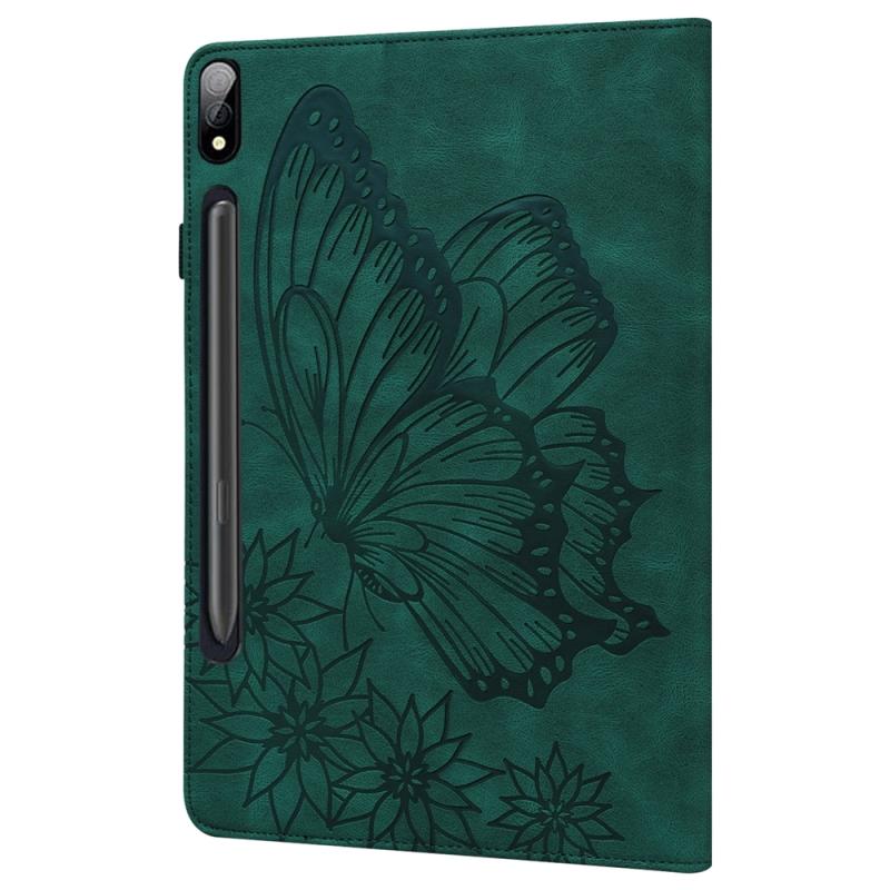 For Samsung Galaxy Tab S9 Ultra / S8 Ultra Big Butterfly Embossed Leather Tablet Case(Green)