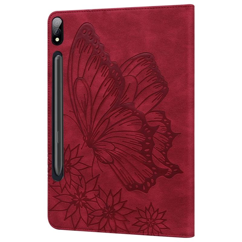 For Samsung Galaxy Tab S9 Ultra / S8 Ultra Big Butterfly Embossed Leather Tablet Case(Red)