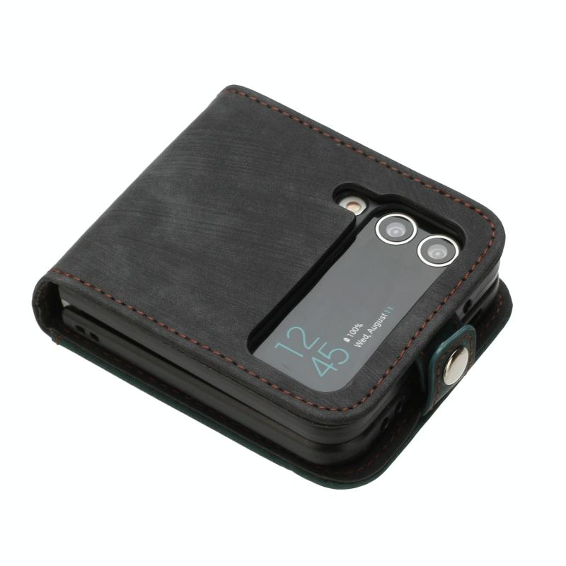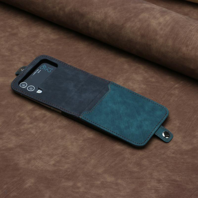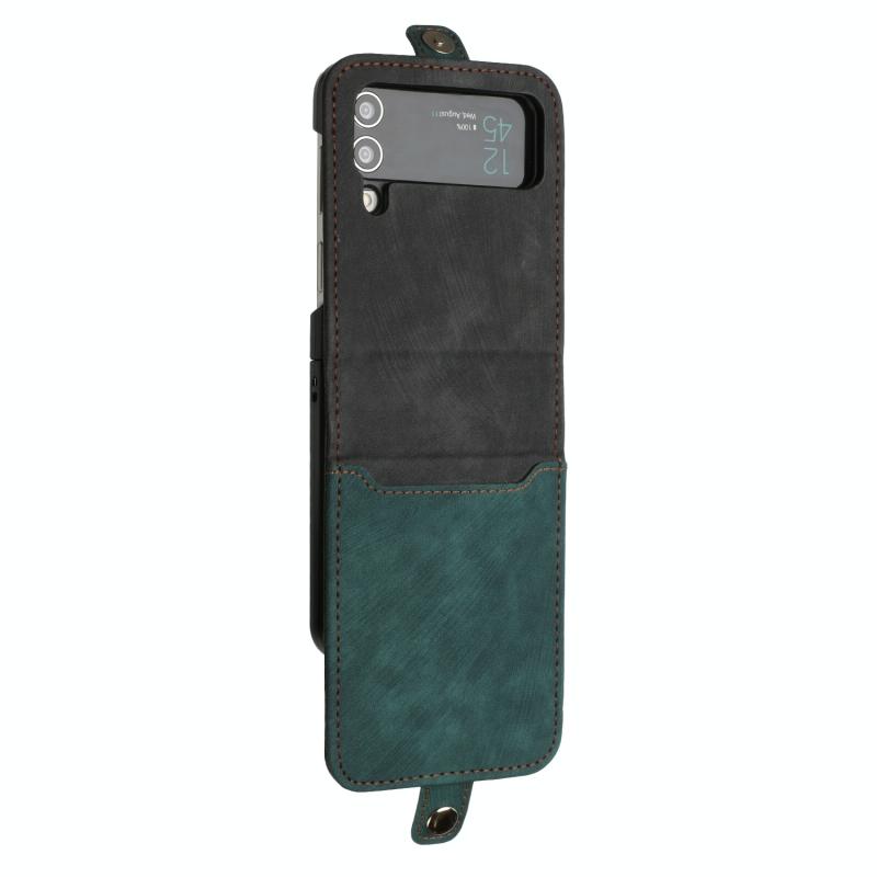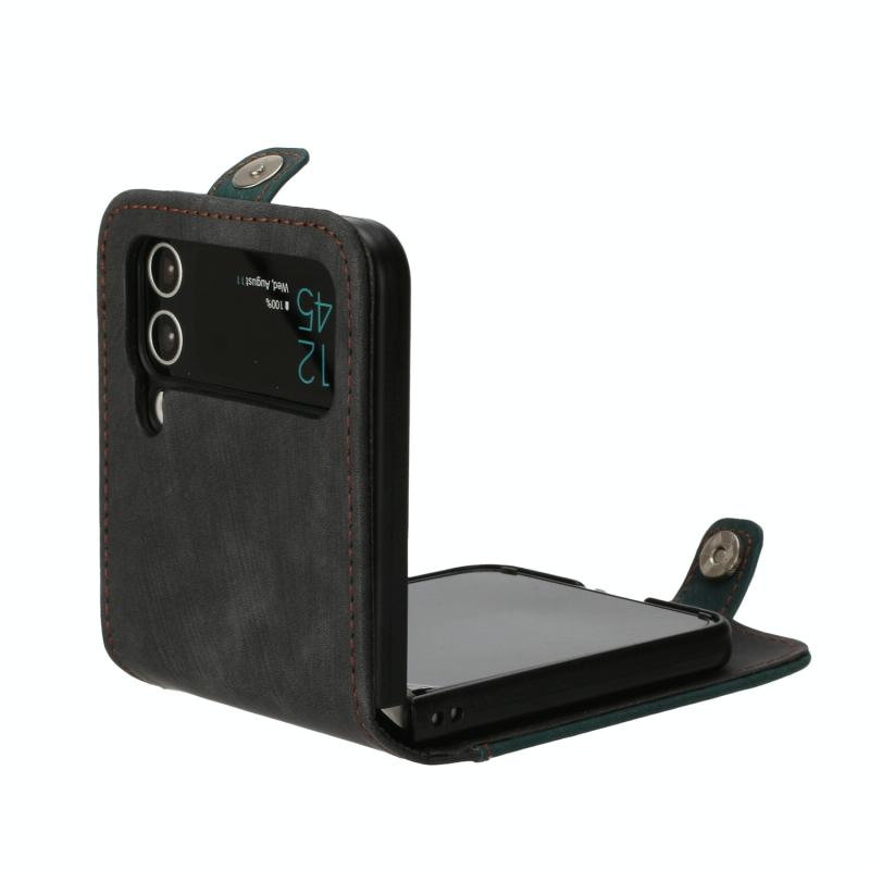 For Samsung Galaxy Z Flip 4 5G Side Buckle Double Fold Leather Phone Case(Dark Green)