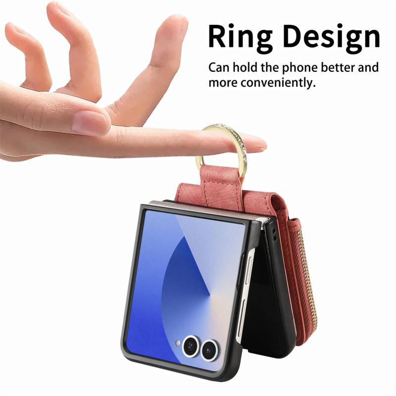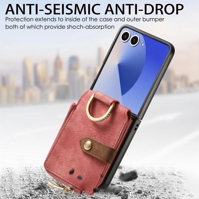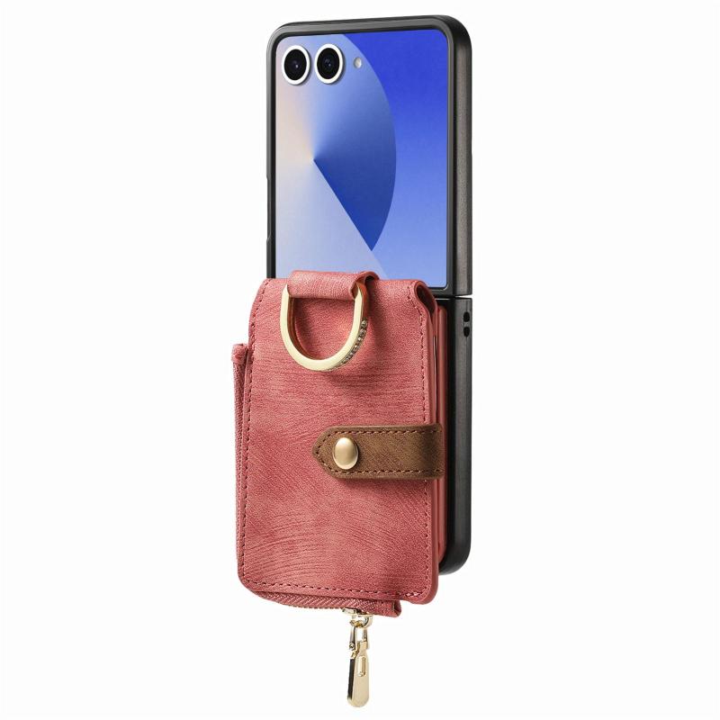 For Samsung Galaxy Z Flip 7 5G Retro Ring Vertical Zipper Wallet Phone Case(Pink)
