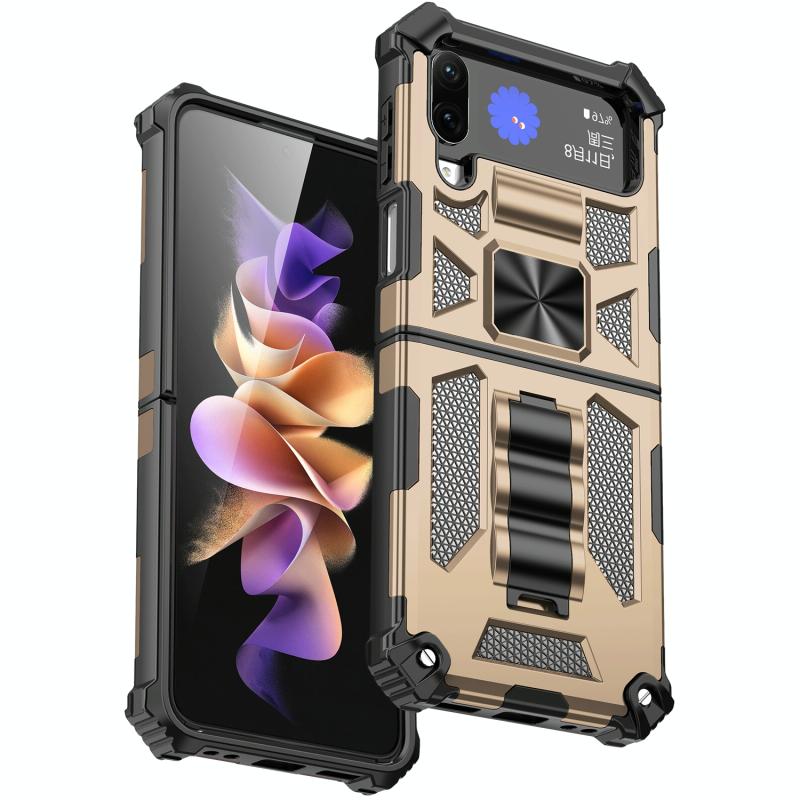 For Samsung Galaxy Z Flip4 5G Armor Shockproof TPU + PC Magnetic Protective Phone Case with Holder(Gold)
