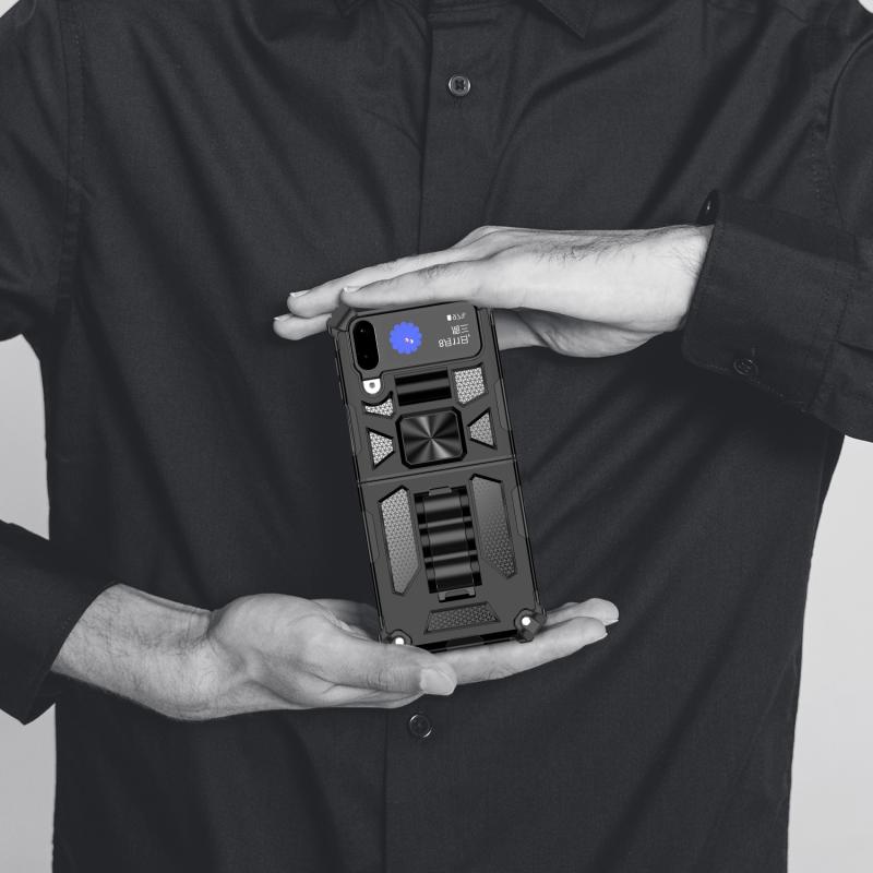 For Samsung Galaxy Z Flip4 5G Armor Shockproof TPU + PC Magnetic Protective Phone Case with Holder(Silver)