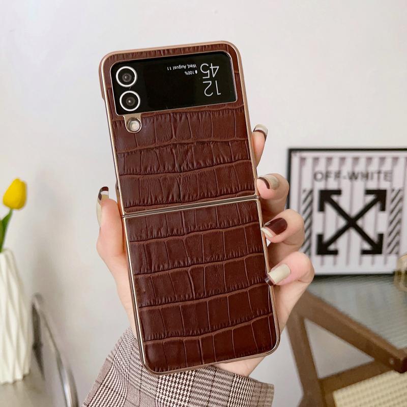 For Samsung Galaxy Z Flip4 5G Crocodile Texture Genuine Leather Electroplating Phone Case(Brown)