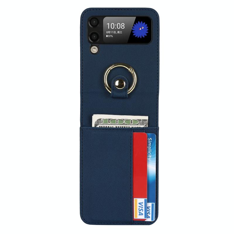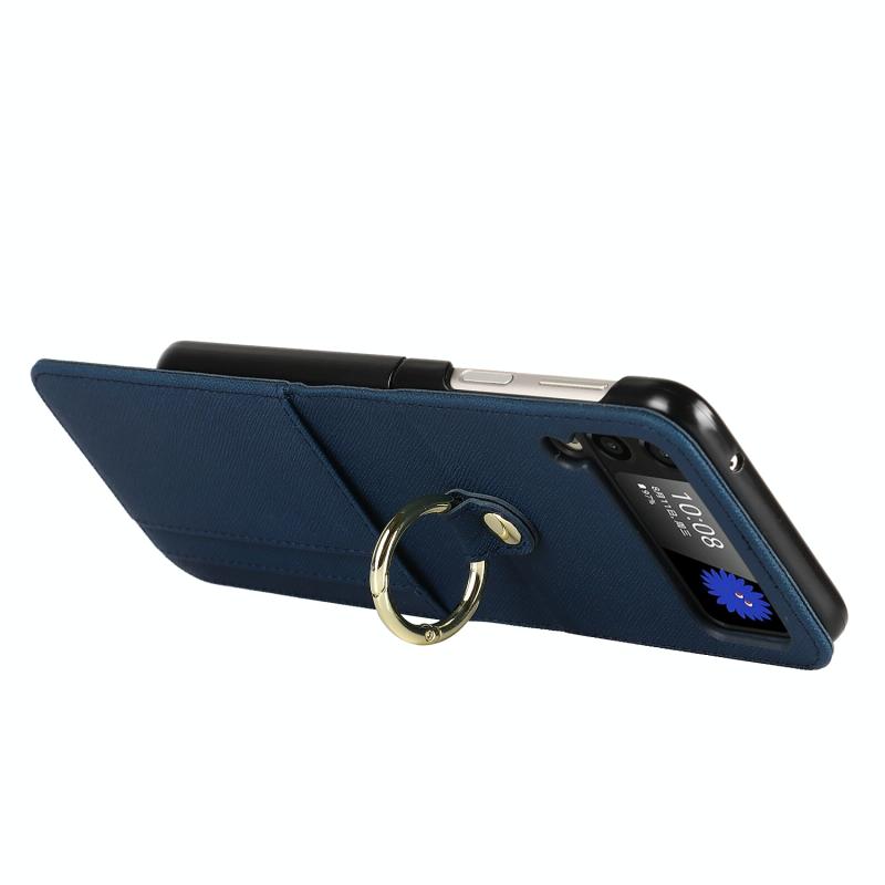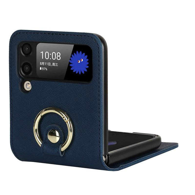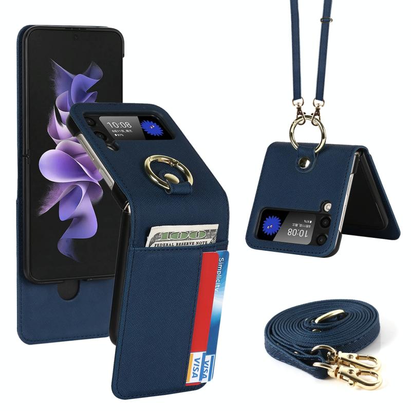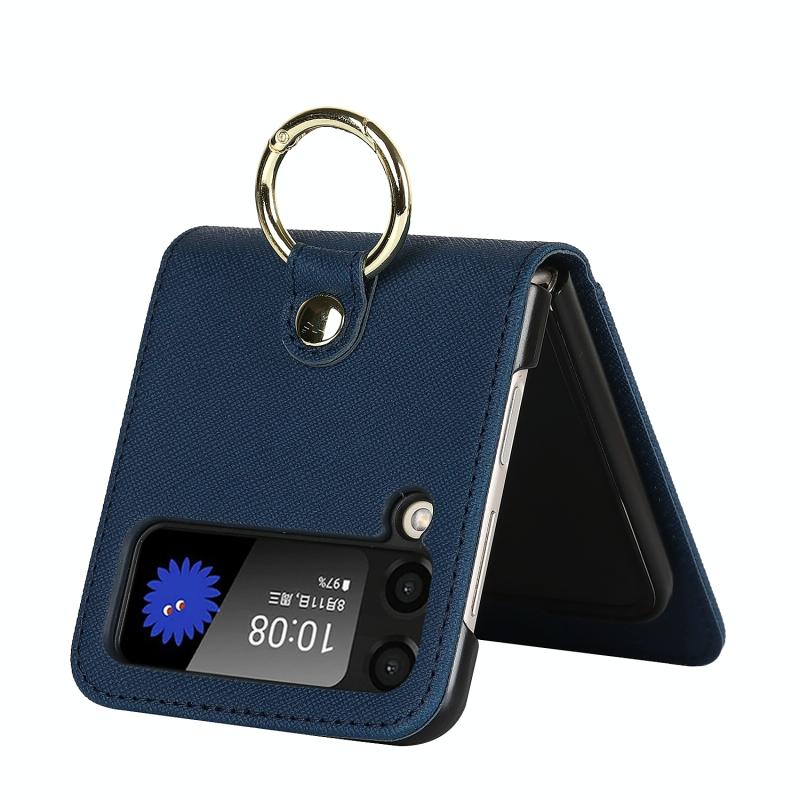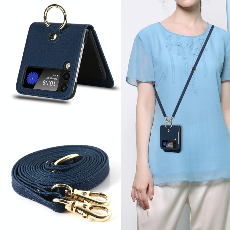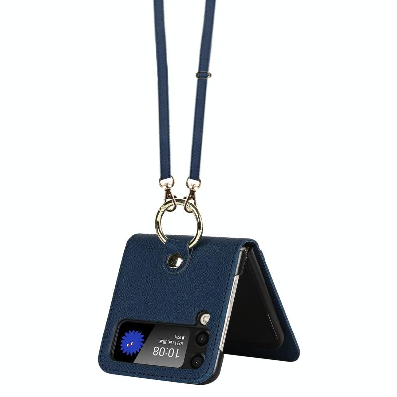 For Samsung Galaxy Z Flip4 5G Cross Texture Lanyard Ring Phone Case(Blue)