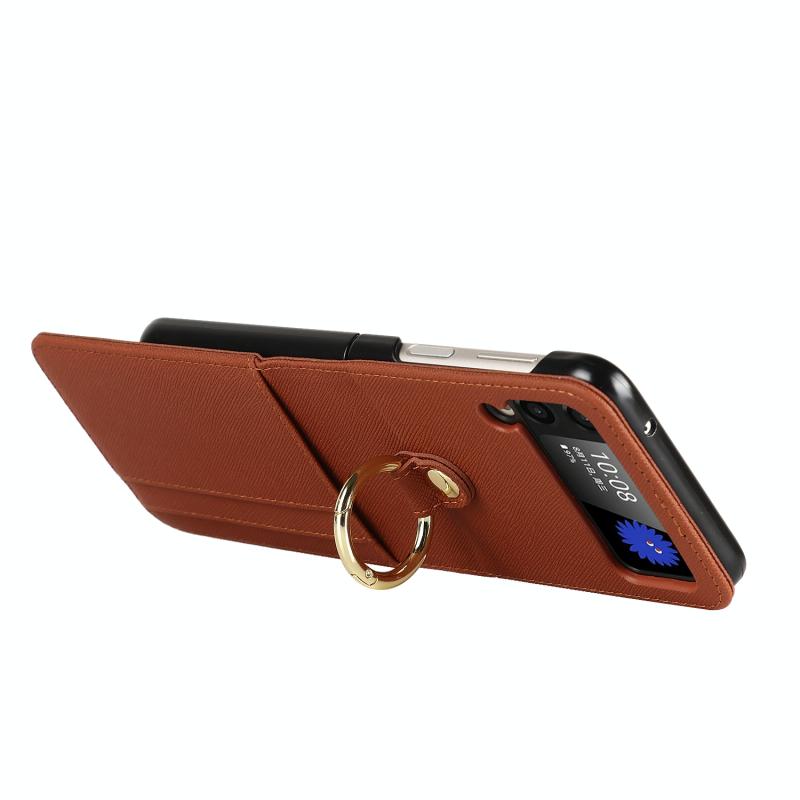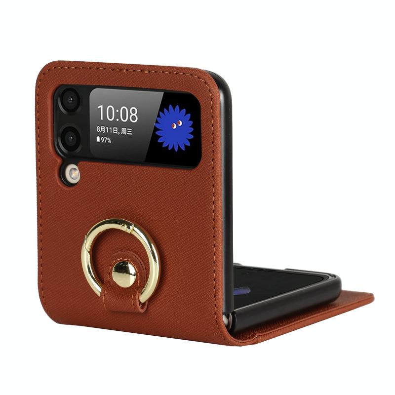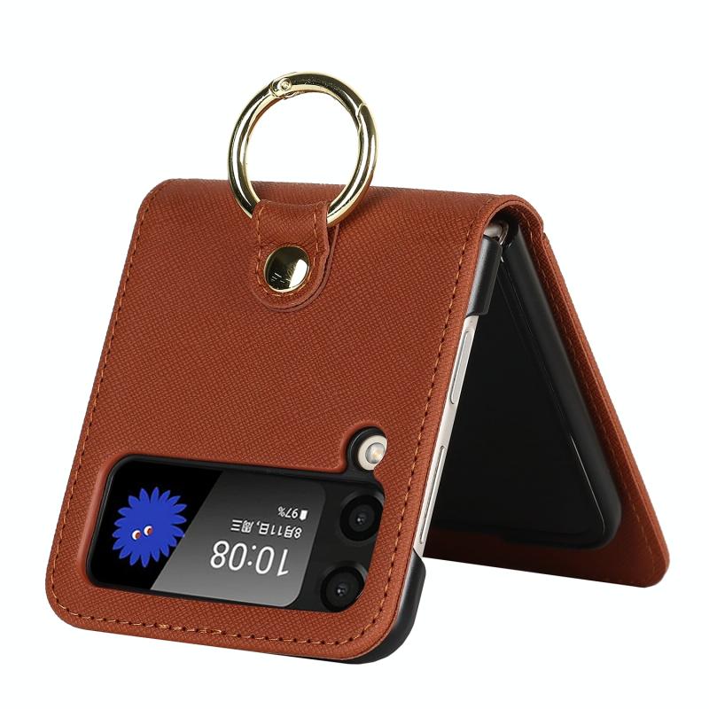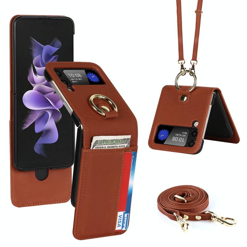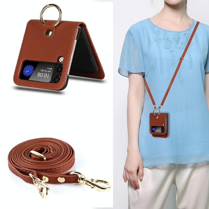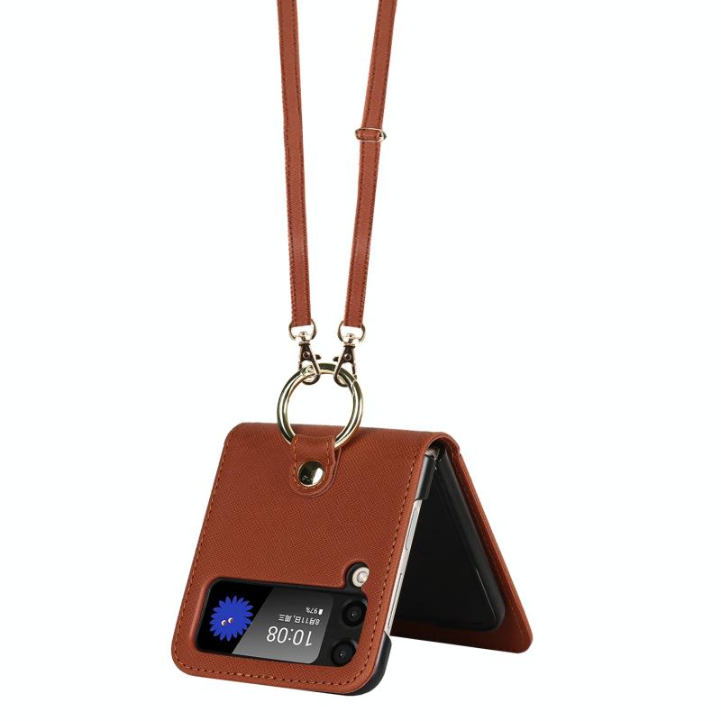 For Samsung Galaxy Z Flip4 5G Cross Texture Lanyard Ring Phone Case(Brown)