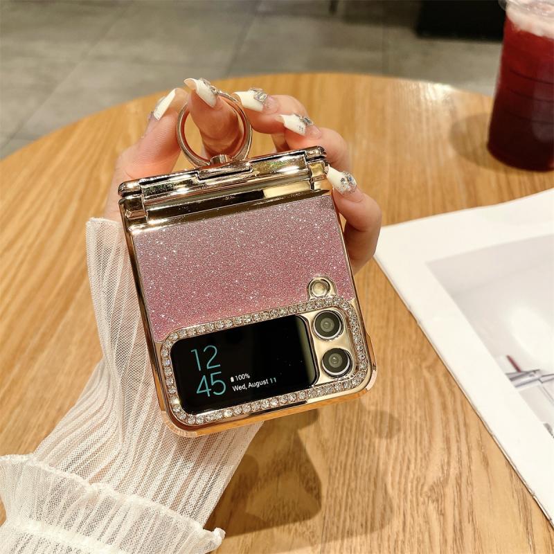 For Samsung Galaxy Z Flip4 5G Electroplated PC Starry Sky Glitter Shockproof Phone Case with Ring(Pink)