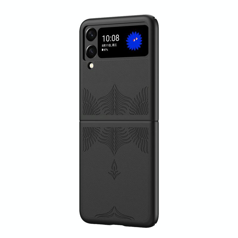 For Samsung Galaxy Z Flip4 5G Embossed Leather Texture Protective Phone Case(Black)