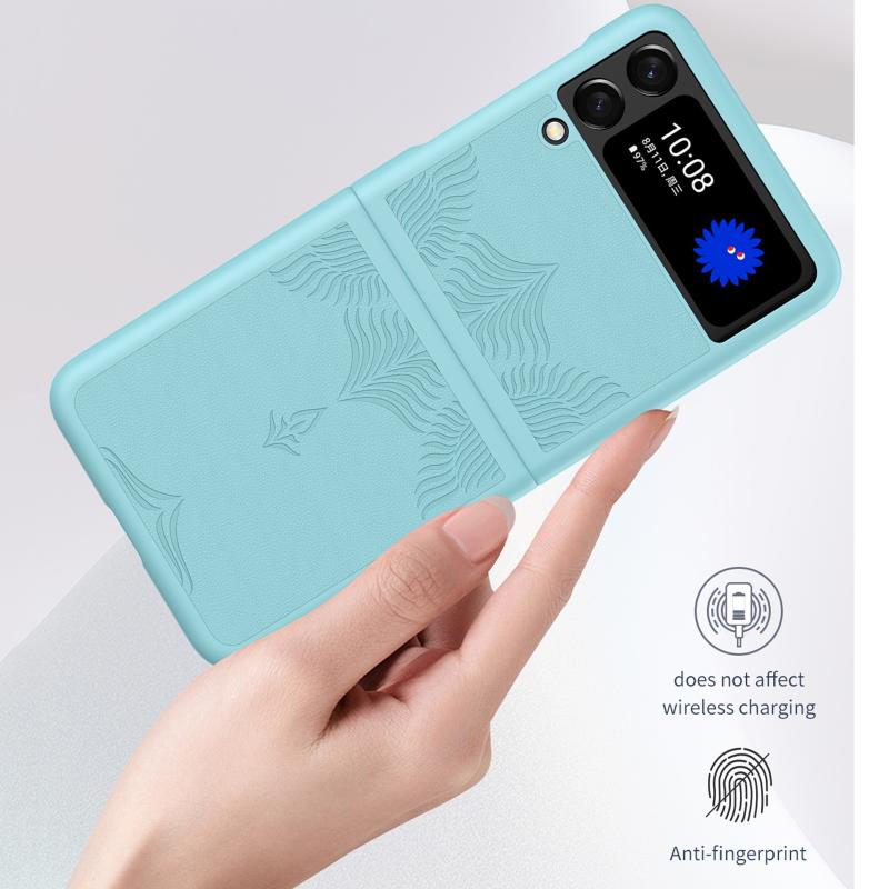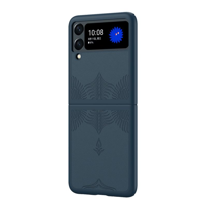 For Samsung Galaxy Z Flip4 5G Embossed Leather Texture Protective Phone Case(Brown Blue)