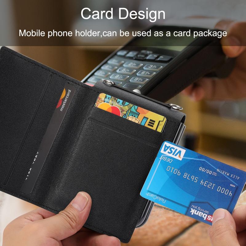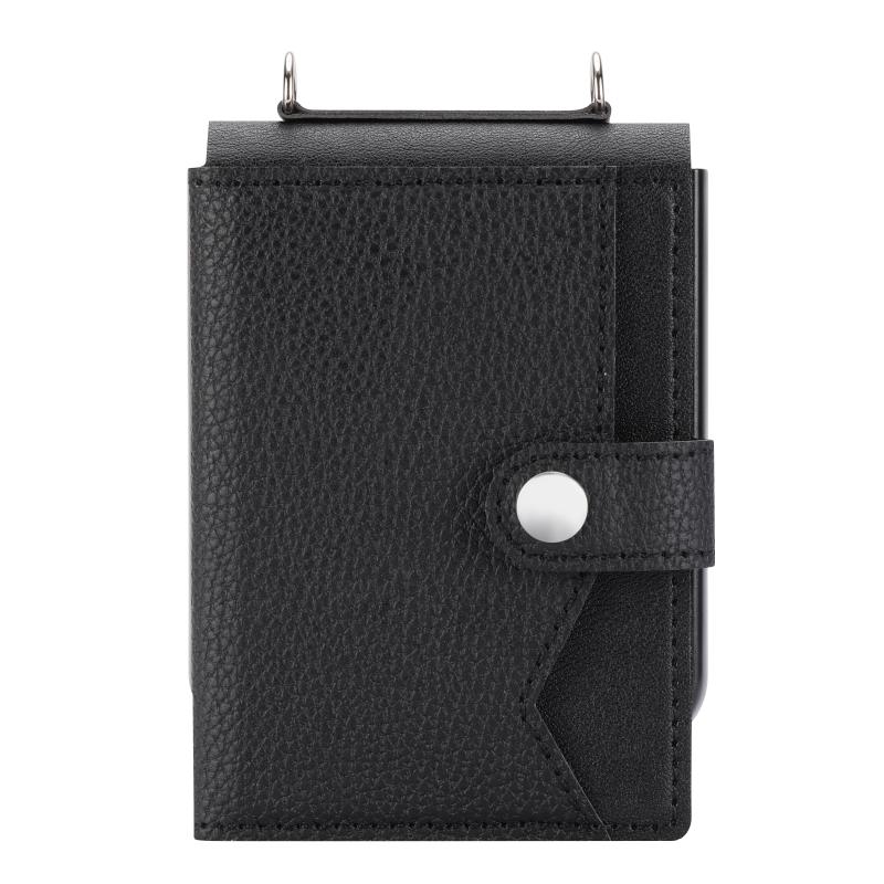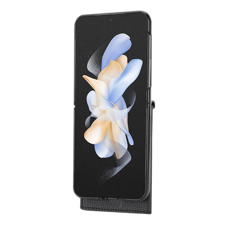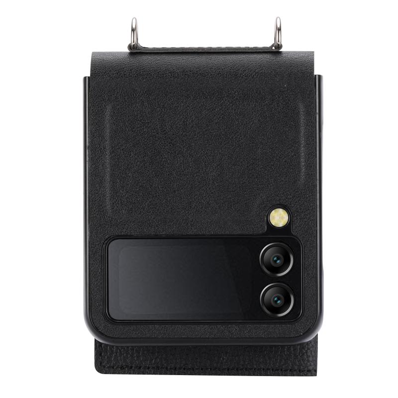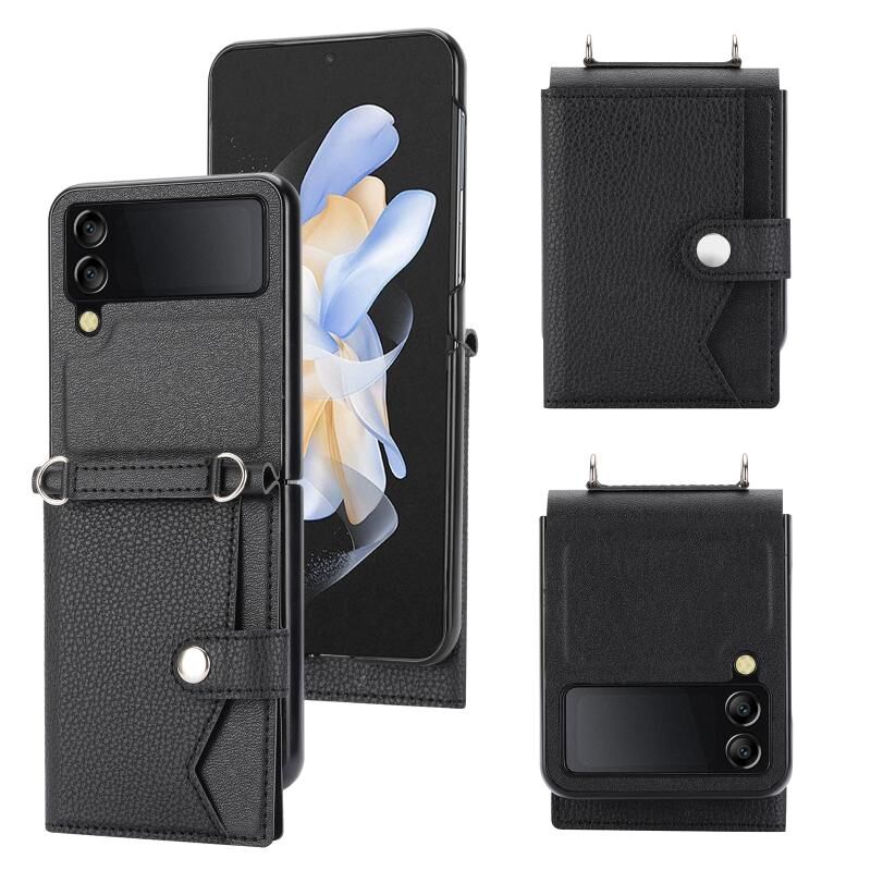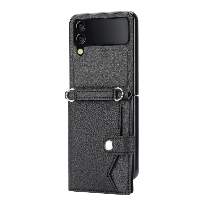 For Samsung Galaxy Z Flip4 5G Litchi Pattern Single Button Card Holder Phone Case with Long Lanyard(Black)