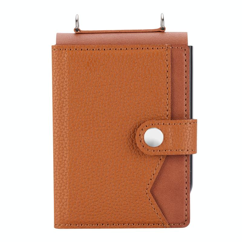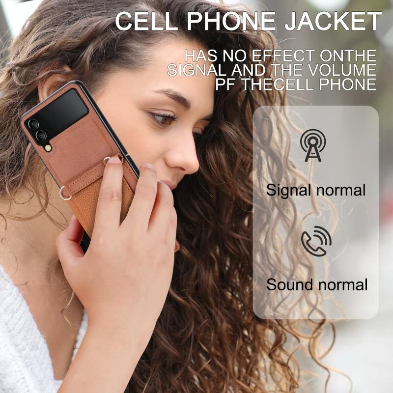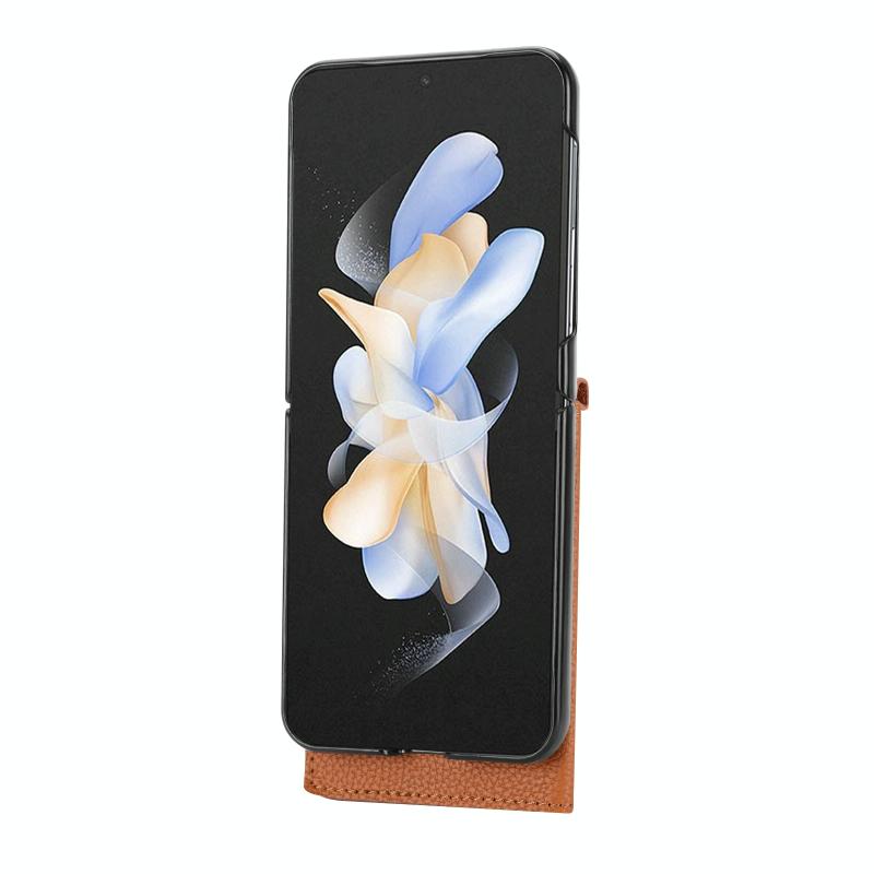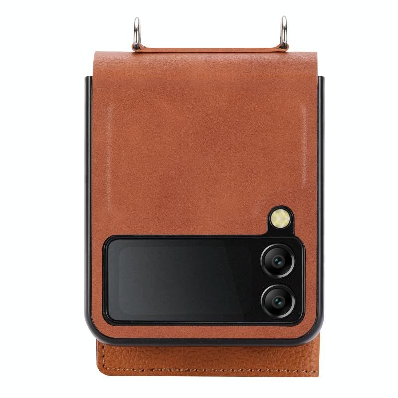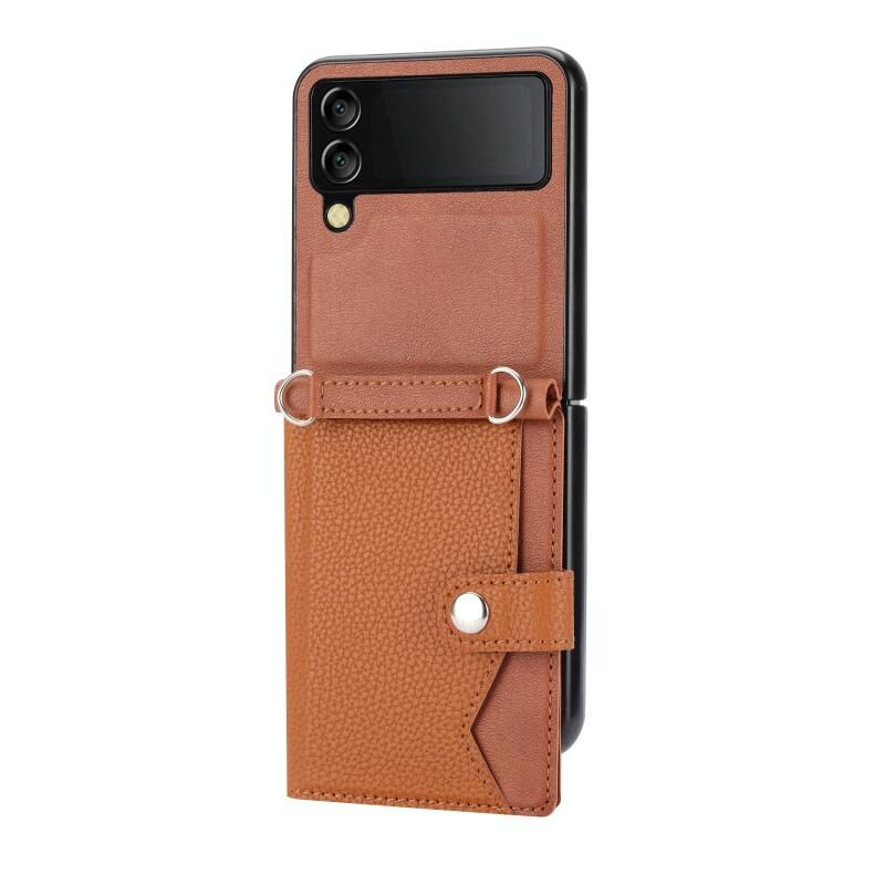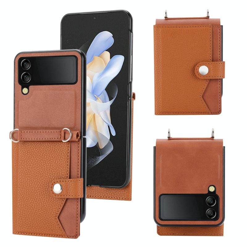 For Samsung Galaxy Z Flip4 5G Litchi Pattern Single Button Card Holder Phone Case with Long Lanyard(Brown)