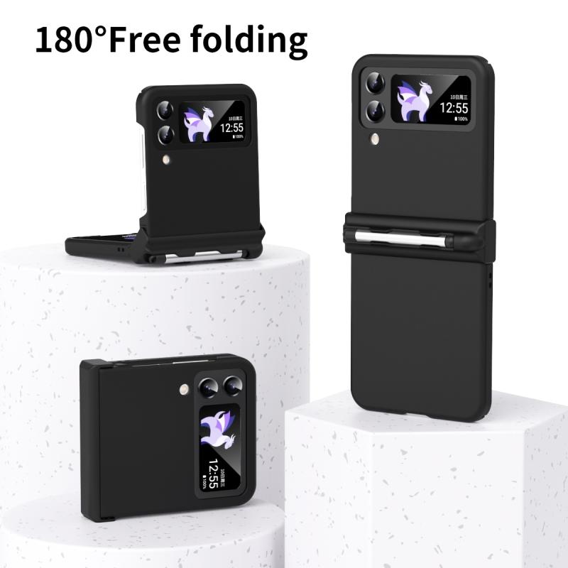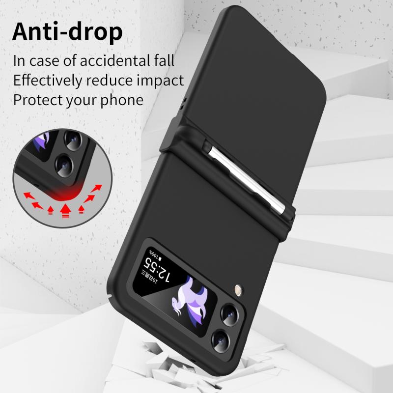 For Samsung Galaxy Z Flip4 5G Macaron Three-piece Set Phone Case with Stylus(Black)